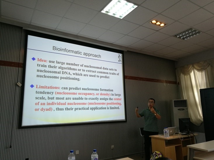 pp电子游戏官网特邀内蒙古科技大学刘国庆教授于7月7日上午10:00在计算机大楼A521做了一场题为“从DNA物理特性看核小体的定位与滑动”专题报告会。