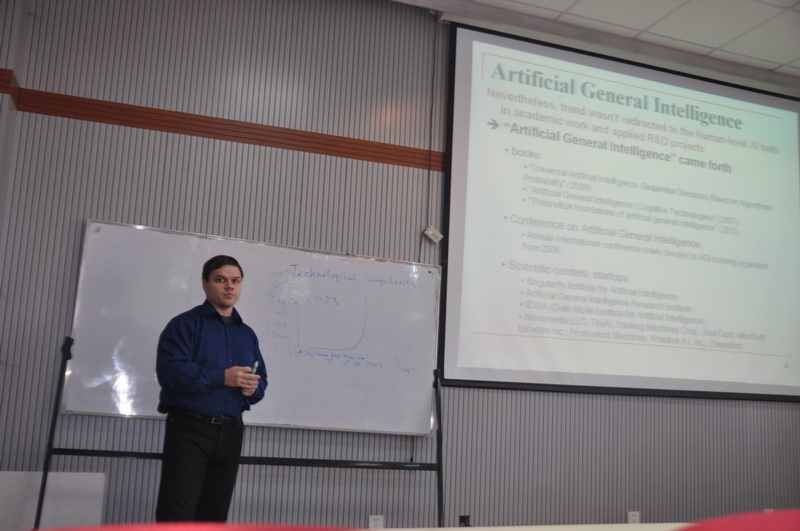 应我校pp电子游戏官网副院长欧阳继红教授的邀请,2014年11月30日-12月03日俄罗斯圣彼得堡国立大学和圣彼得堡国立信息技术、力学与光学大学计算机学院Aleksei Potapov教授来我院访问。在访问期间,为学院师生作了题目分别为《Minimum Description Length Principle in Computer Vision and Machine Learning》和《Universal Induction and Metacomputations in Artificial General Intelligence》学术报告。