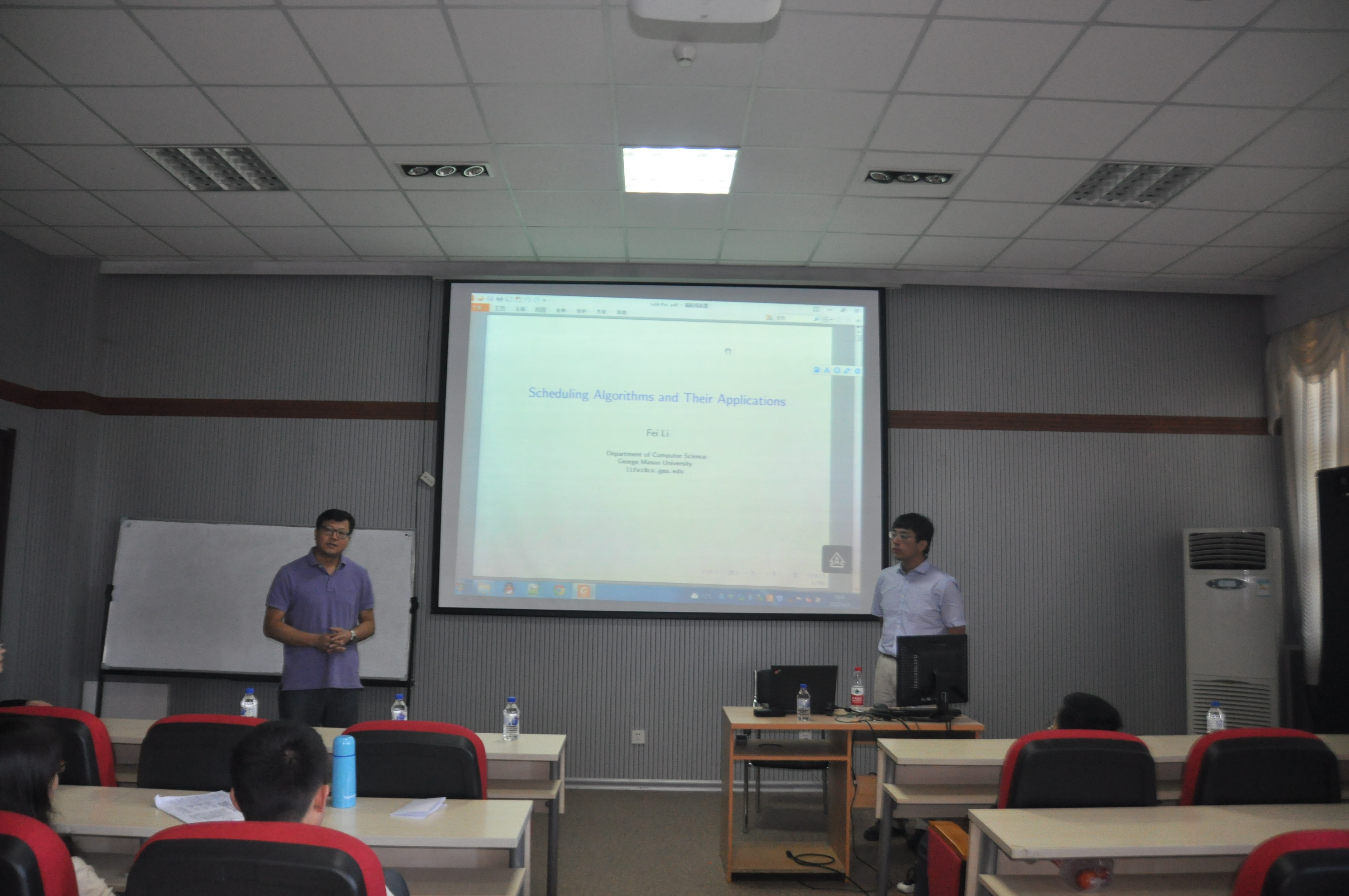 乔治梅森大学李菲教授应pp电子游戏官网的邀请,于2015年6月3日上午,作了题为“Scheduling Algorithms and Their Applications”的学术报告。报告由计算机学院杨博教授主持。