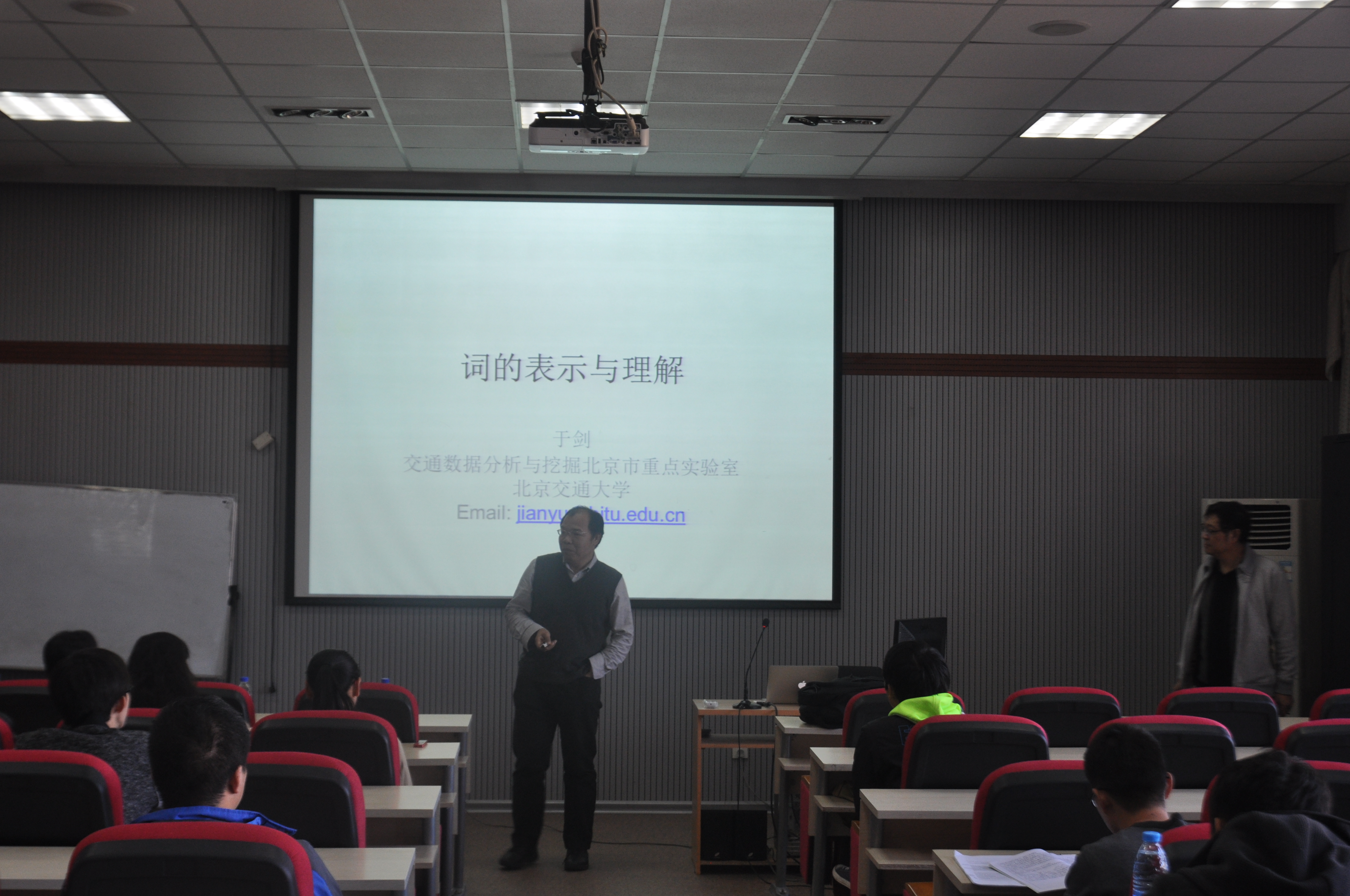 北京交通大学于剑教授应pp电子游戏官网及符号计算与知识工程教育部重点实验室的邀请,于2015年10月28日上午,作了题为“词的表示和理解”的学术报告。报告由计算机学院杨博教授主持。