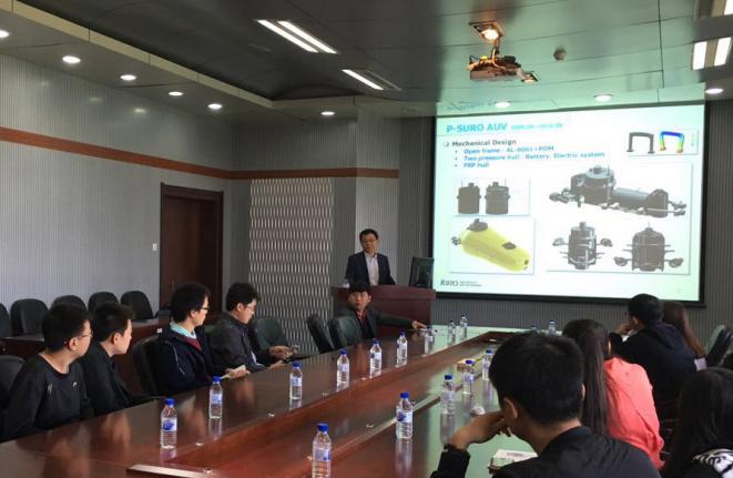 首先,李继红博士从水下机器人的应用、面临挑战、研究现状及未来研究方向的展望几方面入手,结合他本人在韩国研究所现在所研究的水下机器人项目,辅以图片及水下机器人视频实例,对水下机器人的型号、软硬件技术和创新点作详细的讲解。而后,李继红博士与pp电子游戏官网刘军教授就水下机器人的实用性、技术创新以及水下机器人怎样与我院智慧海洋科学与技术研究中心的水声通信网络技术结合以提高机器人的水下定位问题进行进一步的讨论。这次报告会不仅开阔了同学们在国际上的视野,为今后的研究提供了信的想法,同时老师们之间的交流也将为学院带来更多国际化的合作。