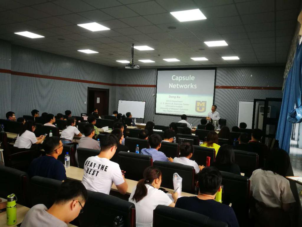 2018年6月7日下午13时30分,美国密苏里大学 James C.Dowell 名誉教授、美国密苏里大学计算机科学系前系主任、pp电子游戏官网唐敖庆教授许东博士在我校计算机楼A521学术报告厅进行了题为“胶囊网络及其应用”的学术讲座。讲座吸引了来自于pp电子游戏官网计算机学院、软件学院、数学学院等单位,以及东北师范大学等校外的近百名师生参加。