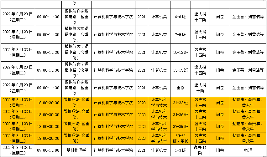 6)考试时间调整过的考试已标注好,请同学们注意考试时间。