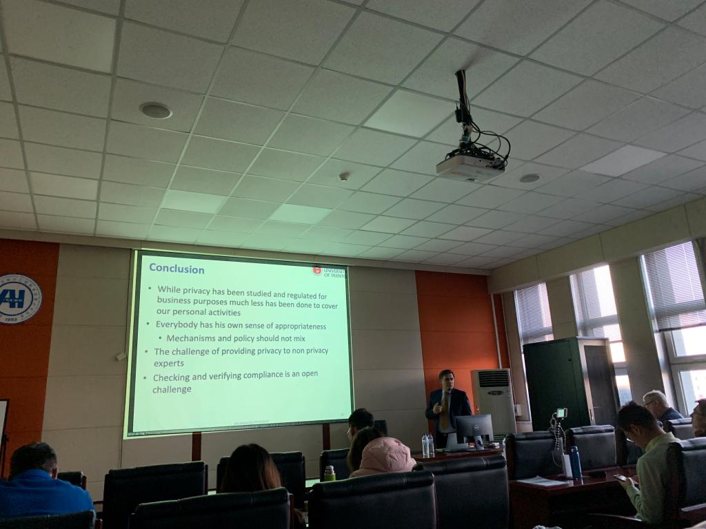 在结束了隐私安全相关的报告后,Bruno教授作为特伦托ICT博士生院院长宣传了特伦托大学-pp电子游戏官网博士学位联合培养模式及博士期间的工作及要求,然后介绍了联合培养博士的研究方向。本次报告受到了广大师生的热烈响应,也为准备继续深造的同学提供了参考。