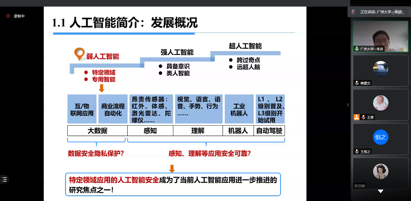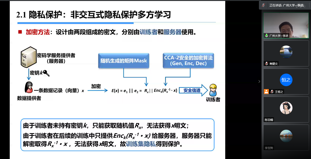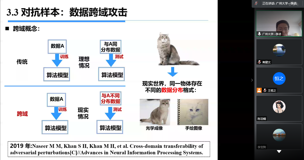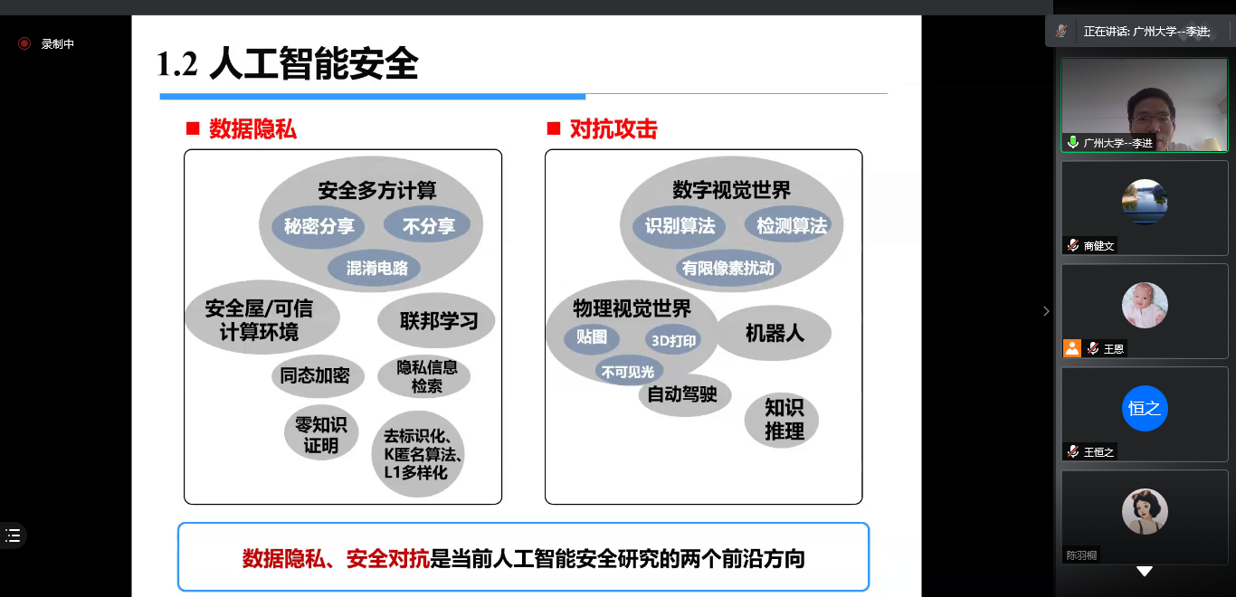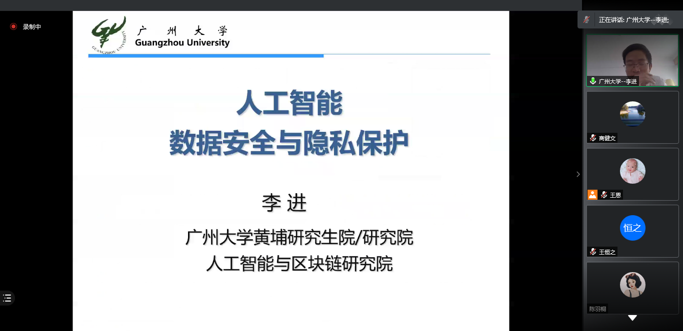 2021年3月25日上午,广州大学李进教授应pp电子游戏官网邀请,以线上形式作了题为“机器学习中的对抗与数据安全隐私”的学术报告。