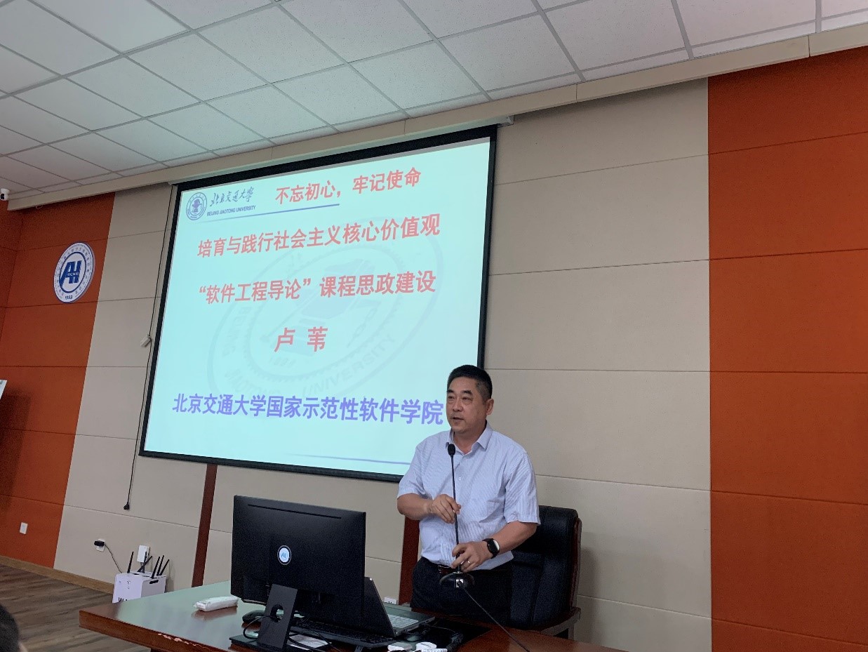 三位讲者分别围绕如何理解课程思政,如何将课程思政自然的融入到理工科课程中,特别是计算机类课程中课程思政面临的主要问题等进行深入探讨,并与听众展开热烈地讨论。北京交通大学的卢苇教授针对课程思政的提出背景,针对课程思政的设计目标,遵循课程思政的设计原则,结合信息类专业导论课程进行了课程思政的设计与建设方法的介绍,提出要在课程思政中落实培养德智体美劳全面发展的社会主义建设者和接班人的目标。pp电子游戏官网的石瑛教授结合教育部提出的“全面加强课程和专业思政建设,强化每位教师立德树人意识,把思想政治教育有机融入每门课程”的主要思想,总结出“目标融合创新、内容融合创新、技术融合创新、模式融合创新”的创新模式。pp电子游戏官网的陈娟副教授介绍了多年带领团队开战混合式教学改革经验,并从课程思政、教学内容、教学模式、教育技术和教学实施等方面分享了“程序设计基础”混合式金课建设与课程思政实践经验。