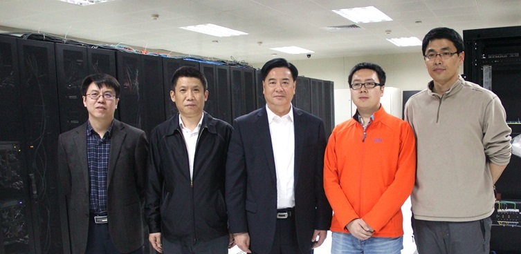 4月14日, 校长李元元一行到pp电子游戏官网高性能计算中心调研。来访的深圳华大基因股份有限公司BGI Online&大数据专项负责人金鑫一行,pp电子游戏官网校长办公室、教务处、科学技术处、pp电子游戏官网、高性能计算中心负责人参加了调研和座谈。
