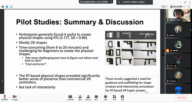 讲座中,朱老师首先介绍了多模态及体感人机交互的研究现状以及团队的研究方向。接下来介绍了最新的研究成果,包括基于声音信号的手势体势交互、触觉反馈方面的新工作和VR有形交互界面等。朱教授的报告不仅包含实现细节,并且结合热点问题,给出了丰富的应用场景,体现了多模态及人机交互研究对社会和经济的重要影响。