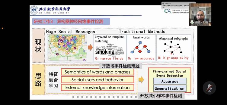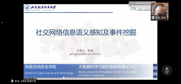 2022年3月6日上午,北京航空航天大学彭浩老师应pp电子游戏官网邀请,作了题为“社交网络信息语义感知及事件挖掘”的学术报告。