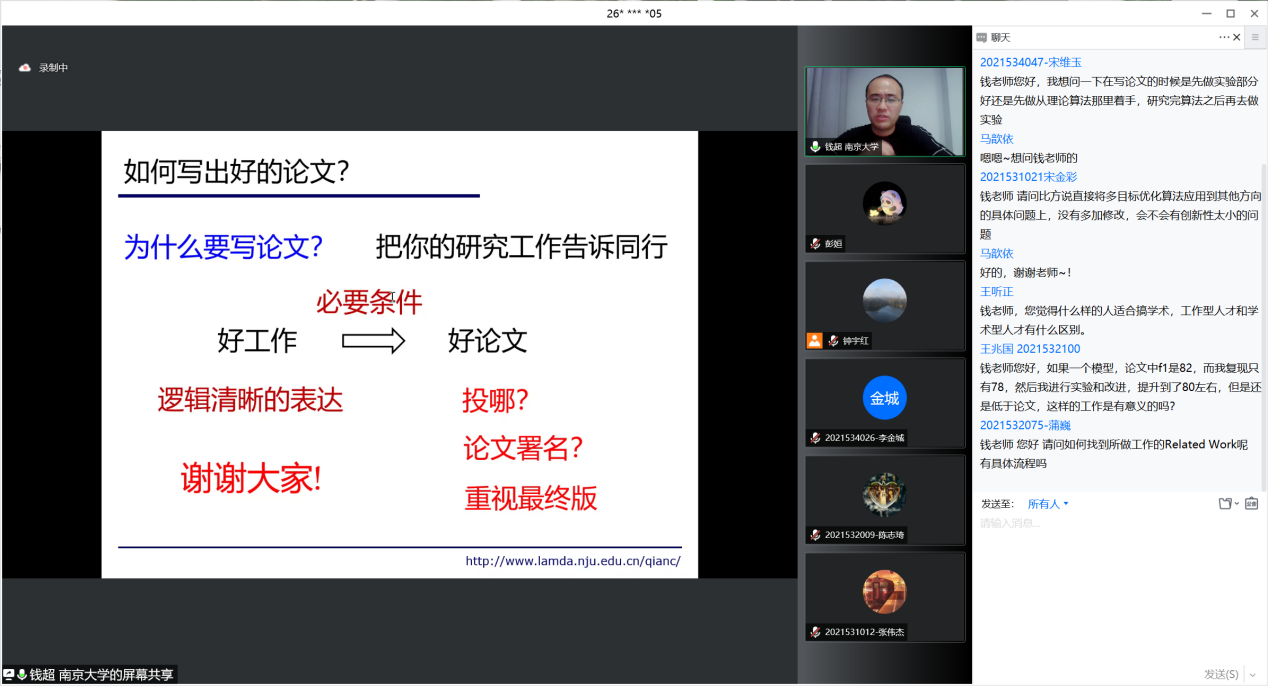 (线上特别版)暨《论文写作指导》课程第三讲顺利进行,活动采取腾讯会议和线上直播两种方式,包容更多师生参与到学术讨论中来。本期邀请了南京大学人工智能学院副教授、博士生导师钱超老师,老师以 “基于多目标演化算法的子集选择问题求解”为题,为同学们开展了一场论文写作经验分享专题讲座。