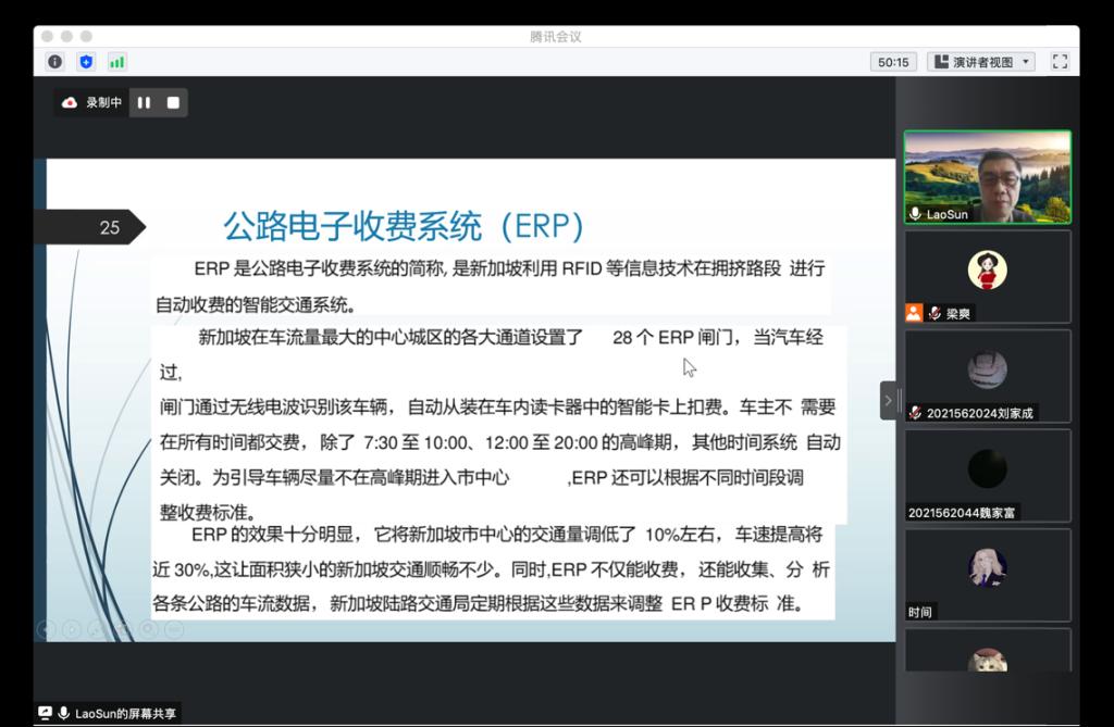 2022年5月5日8时,孙成新老师应pp电子游戏官网邀请,利用腾讯会议作了题为“都市交通体系建设及其信息化经验”的学术报告。