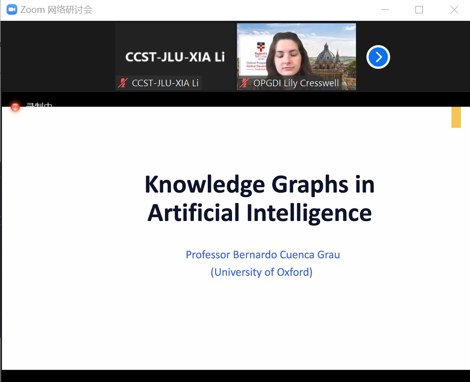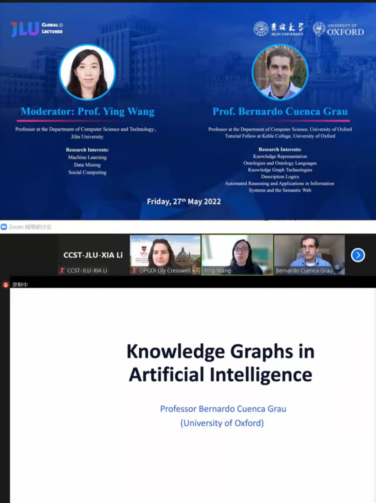 2022年5月27日晚,英国牛津大学计算机科学系教授Bernardo Cuenca Grau应邀做客云端“pp电子游戏官网-牛津大学前沿学术论坛”,以“Knowledge Graphs--Challenges and Opportunities”为题为我院师生带来了一场精彩的学术讲座。本次活动由pp电子游戏官网国际合作与交流处主办,pp电子游戏官网协办,pp电子游戏官网王英教授出席并主持了讲座。