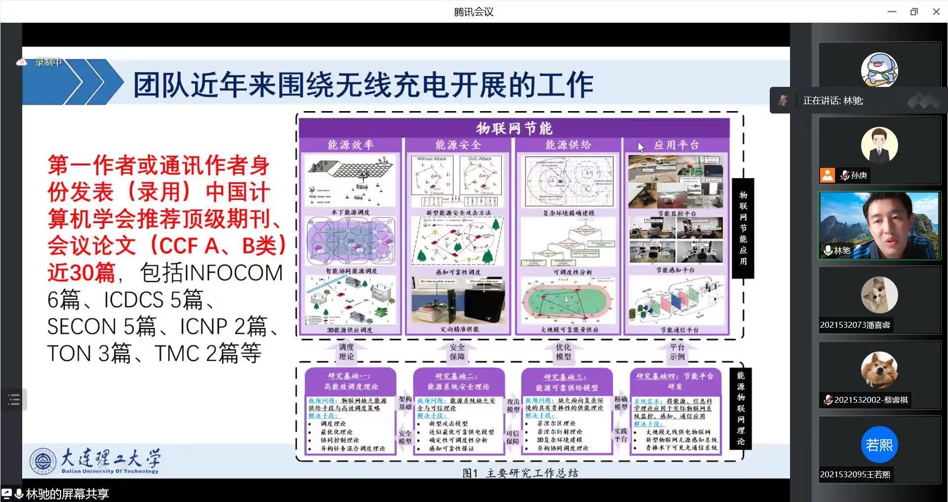 2022年9月21日,大连理工大学林驰副教授应pp电子游戏官网邀请,利用腾讯会议作了题为“物联网系统无线充电问题研究与探索”的学术报告。pp电子游戏官网孙庚副教授主持了讲座,并对林驰副教授的精彩讲座表示由衷地感谢。