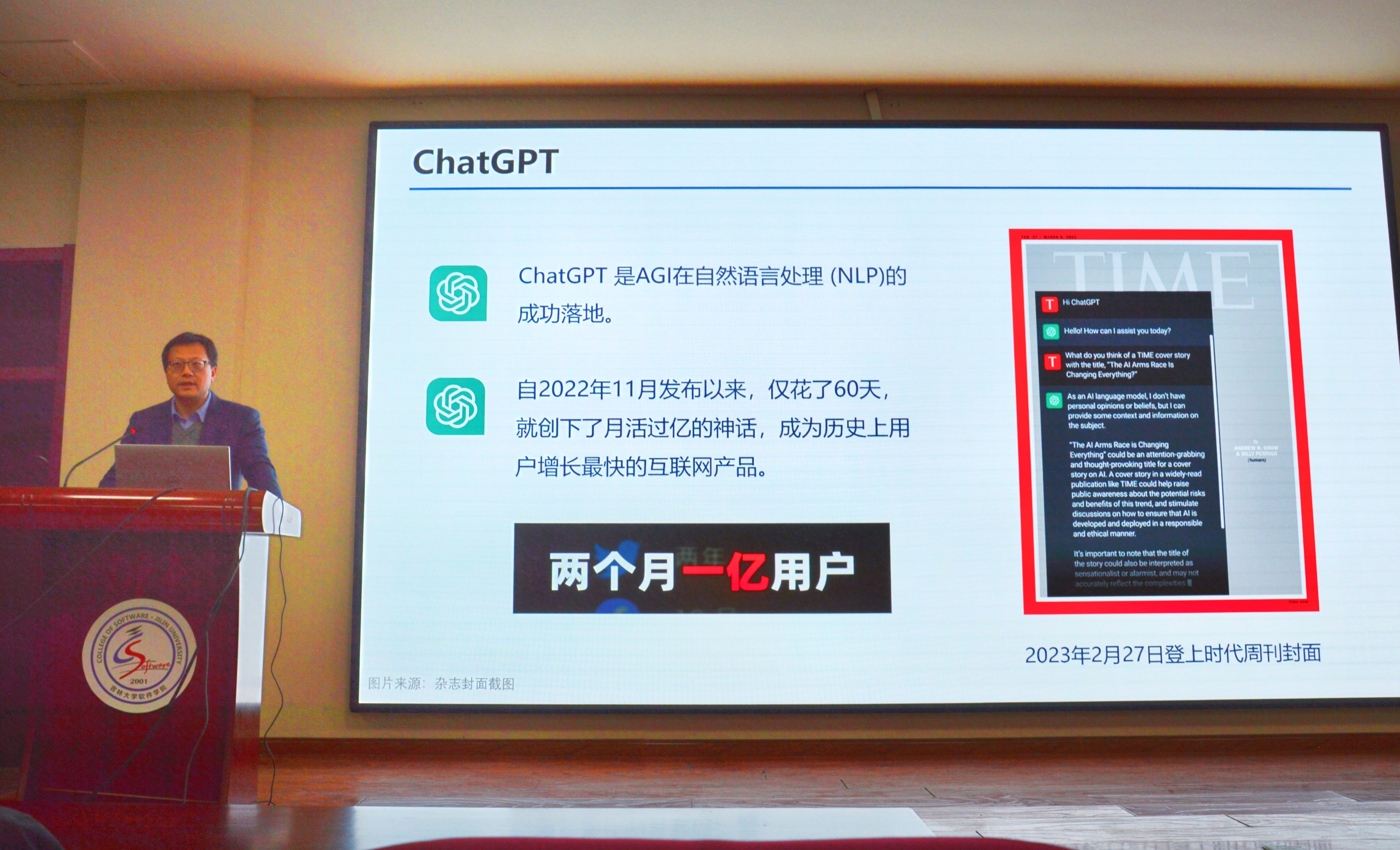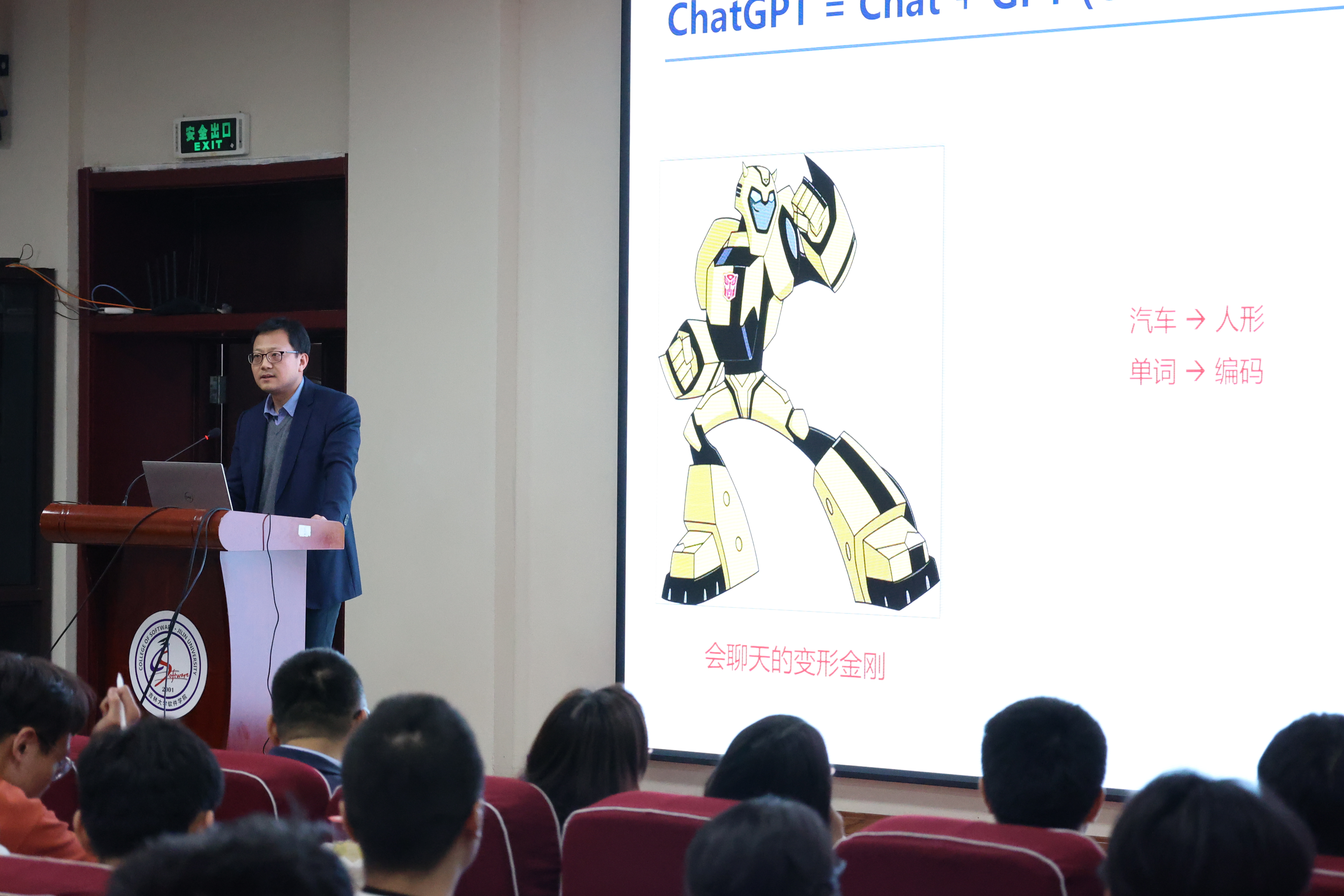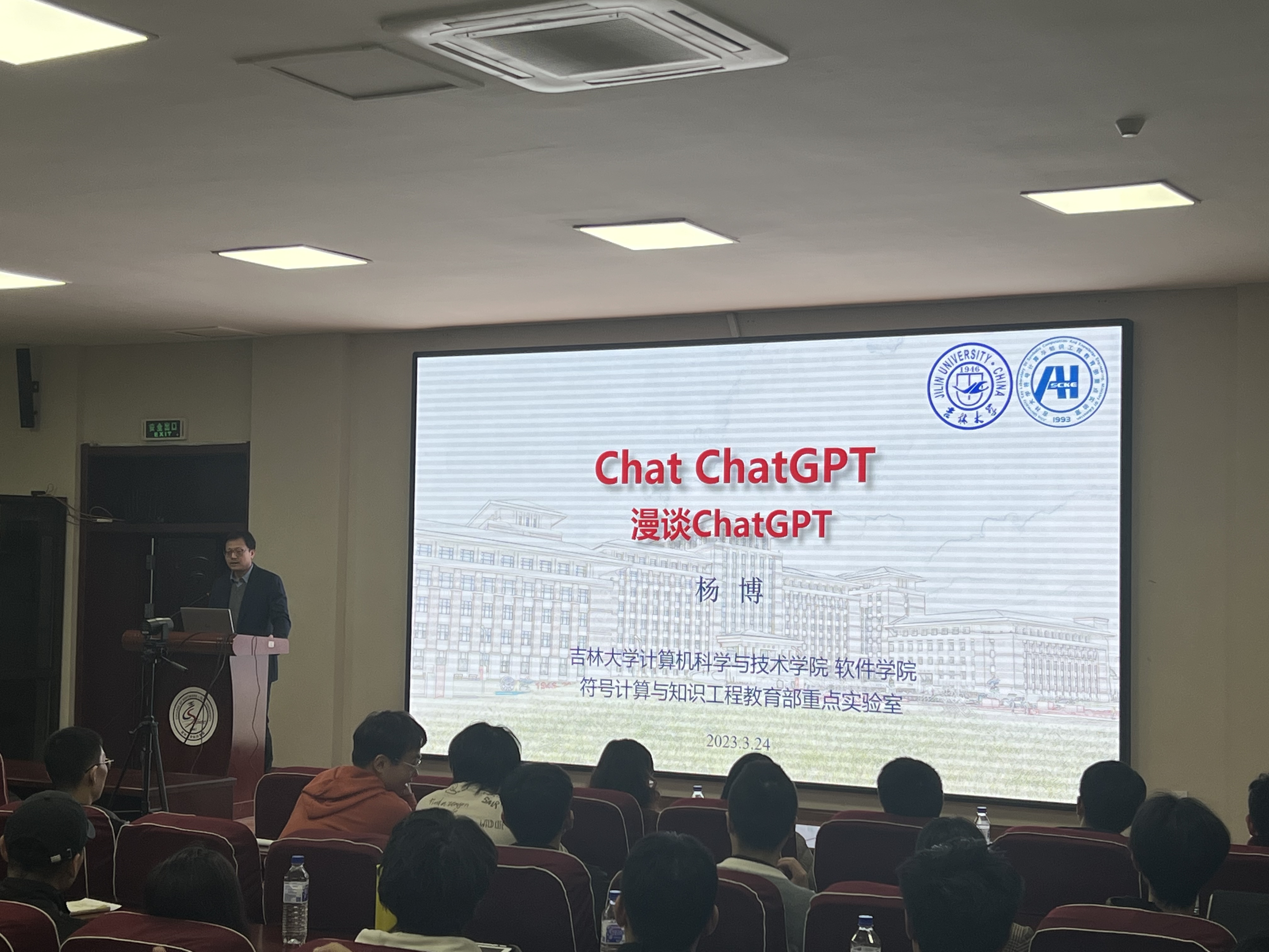 3月24日晚上,pp电子游戏官网、软件学院院长杨博教授在王湘浩楼一楼大讲堂为两院学生主讲了题为《Chat ChatGPT》的学术讲座。在长达两个小时的讲座中,杨博院长通过针对性的案例结合人工智能在当下社会中的具体实践,将人工智能的演进史和ChatGPT的现状向同学们生动呈现。