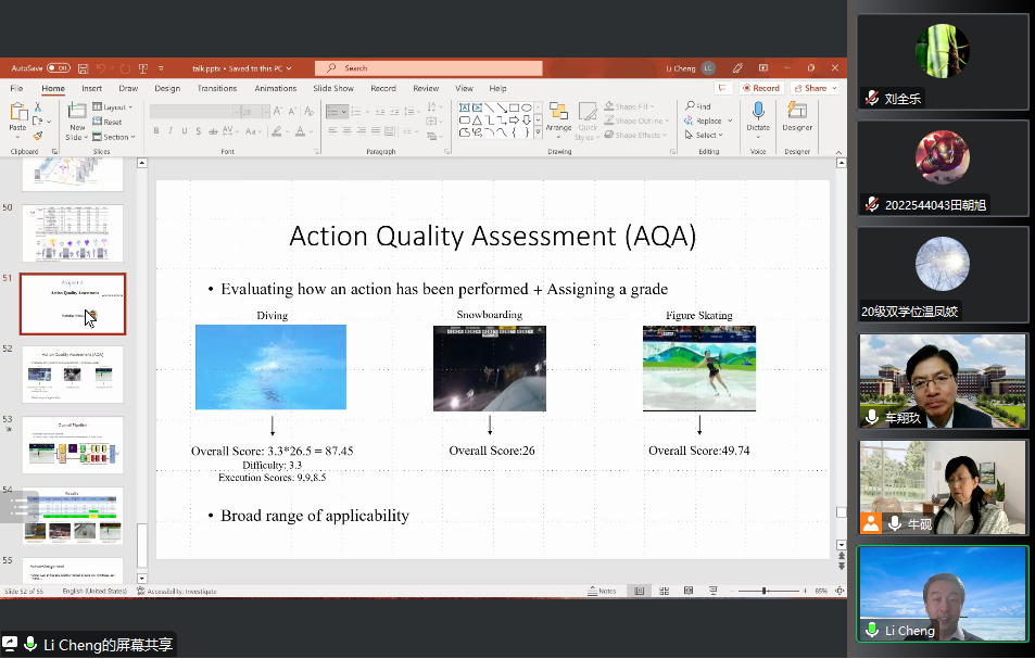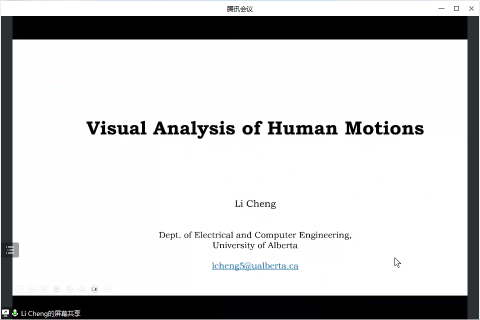 2023年4月14日上午,加拿大阿尔伯塔大学程立教授应pp电子游戏官网邀请,以线上腾讯会议的形式为师生们作了题为“视频人体运动智能分析”的学术报告。报告由pp电子游戏官网车翔玖教授、牛砚副教授共同主持。