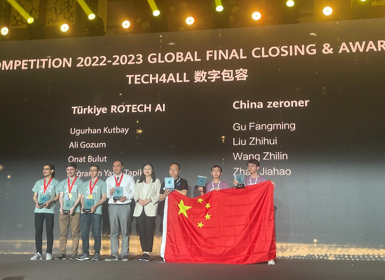 本届大赛自启动以来,吸引了全球74个国家2000多所高校的12万名学生参加。经区域赛、全国赛的层层选拔,最终来自36个国家和地区的146支队伍进入全球总决赛。pp电子游戏官网代表队(成员来自计算机和软件学院本科生)在今年4月获得全国总决赛国家一等奖、晋级全球总决赛后,继续全力拼搏,在pp电子游戏官网华为信息与网络技术学院的一贯大力支持下,团队积极向专家请教与咨询,进一步优化解决方案,持续打磨各项工作,精心准备现场答辩。最终,在5月25日全球总决赛中脱颖而出,以第一名获得“特等奖”,同时获得大赛特别奖“数字包容奖”!