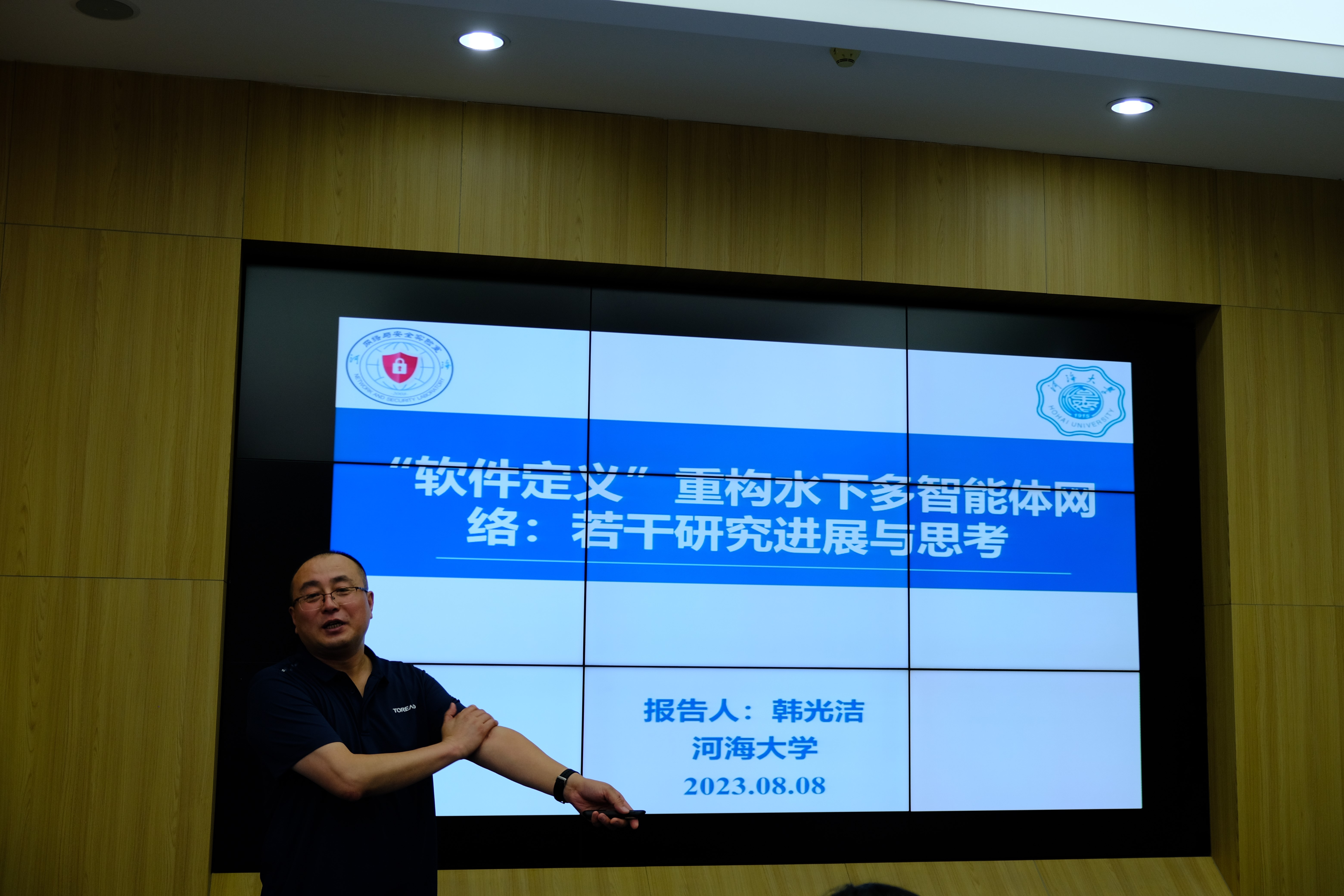 2023年8月8日下午,河海大学信息科学与工程学院院长韩光洁教授应pp电子游戏官网邀请,在pp电子游戏官网中心校区王湘浩楼A117作了题为“软件定义重构水下多智能体网络:若干研究进展与思考”的学术报告。pp电子游戏官网宋姗姗副教授主持了讲座。