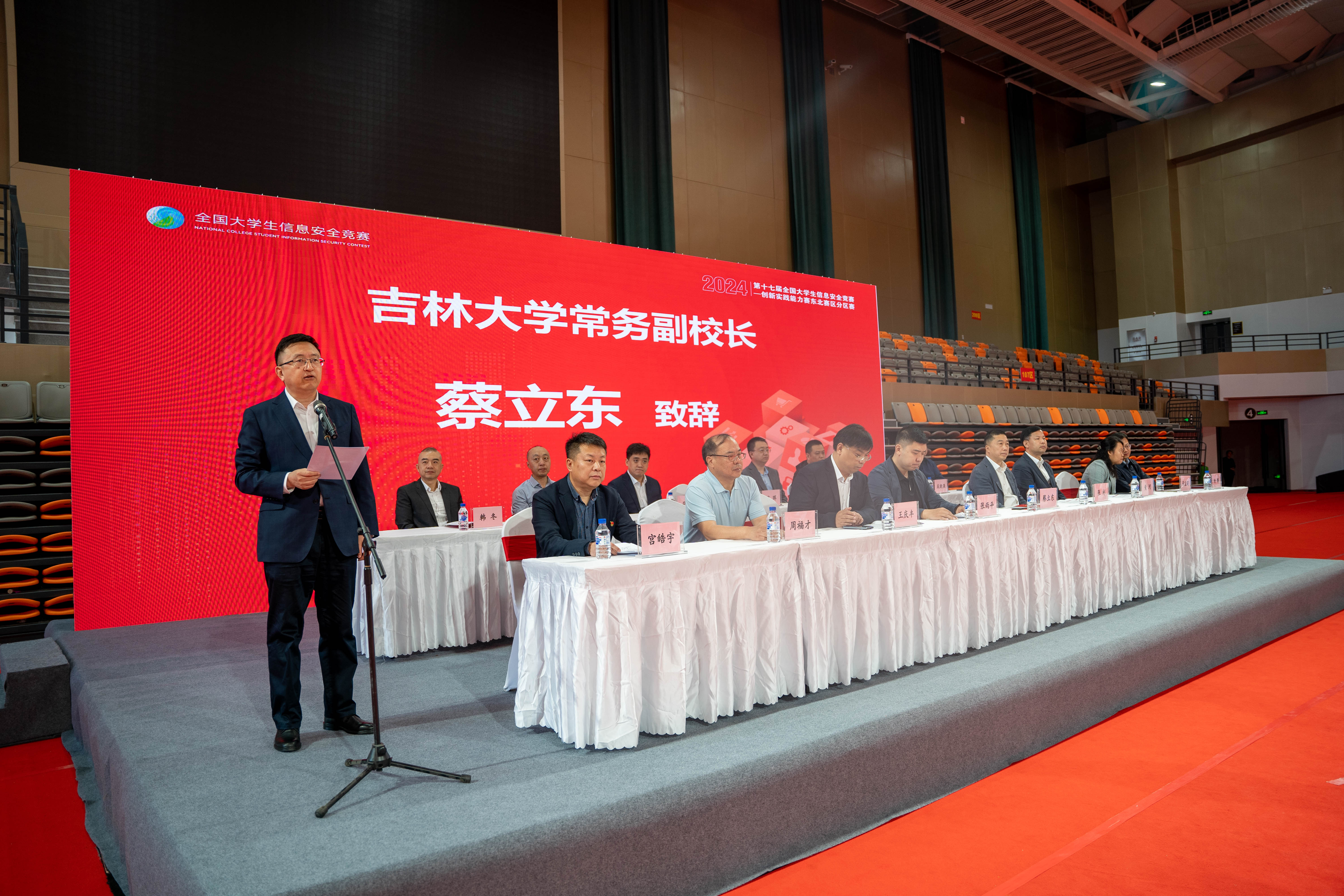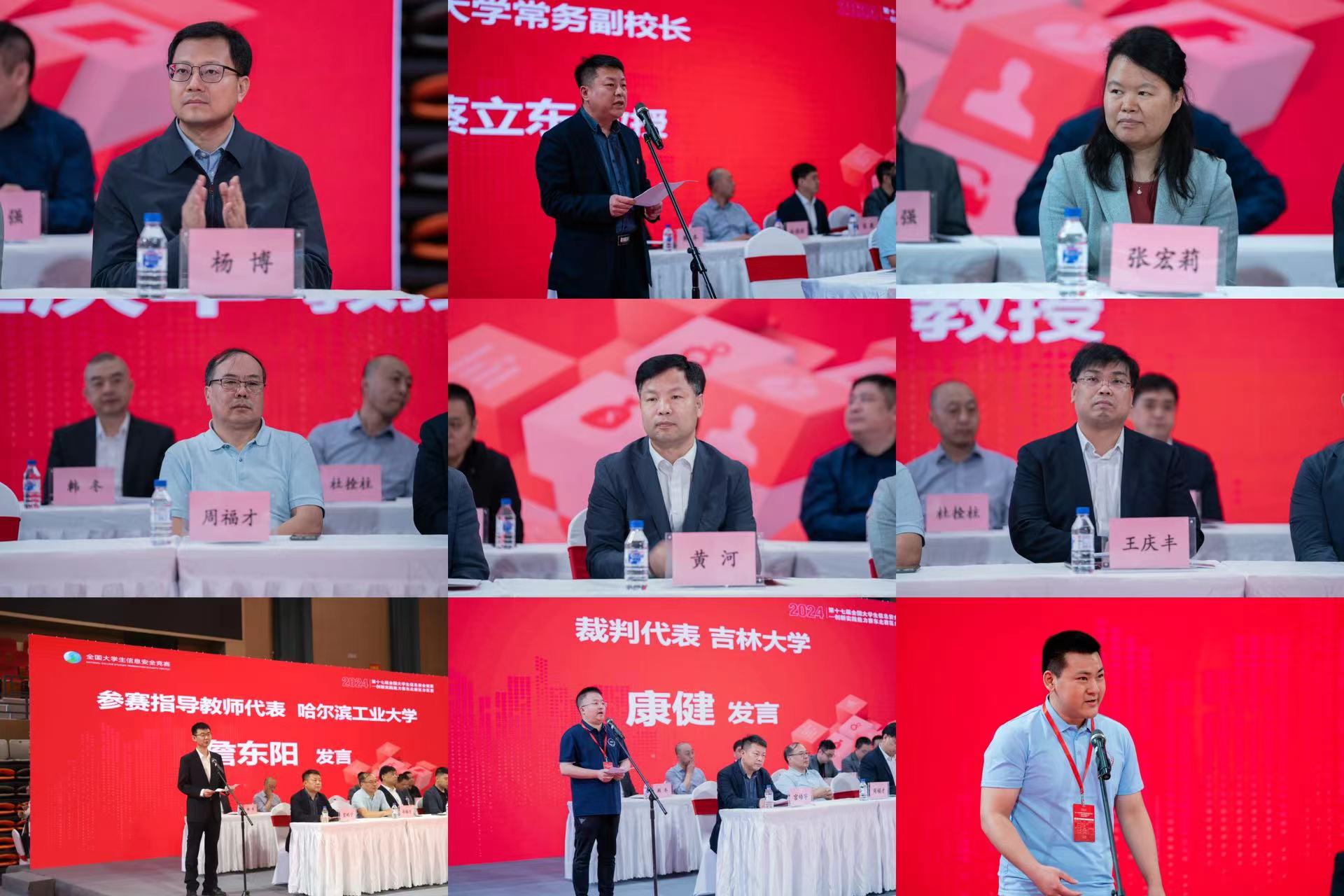 教育部网络空间安全教指委委员、哈尔滨工业大学网络空间安全学院院长张宏莉教授,教育部网络空间安全教指委委员、东北大学周福才教授,pp电子游戏官网、软件学院、网络安全学院院长杨博教授,吉林省网信办相关负责人,吉林省公安厅相关负责人,技术支持公司和协办公司代表,pp电子游戏官网发展规划处、教务处、相关负责人出席了比赛开幕式。开幕式由pp电子游戏官网党委书记宫皓宇主持。