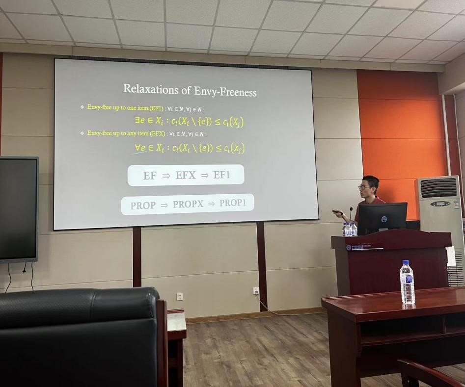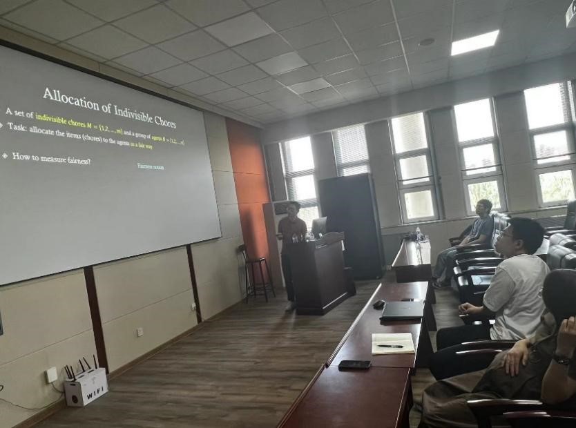 6月26日上午,中国澳门大学电脑及资讯科学系助理教授、智慧城市物联网国家重点实验室研究员吴晓伟,以“Fair Allocations of Indivisible Chores with Subsidy”为题,应邀在pp电子游戏官网王湘浩楼进行计算机专家讲座。参会人员有刘学艳老师,邢千里老师,23级唐班本科生,硕士和博士研究生。pp电子游戏官网崔佳旭副教授主持讲座。