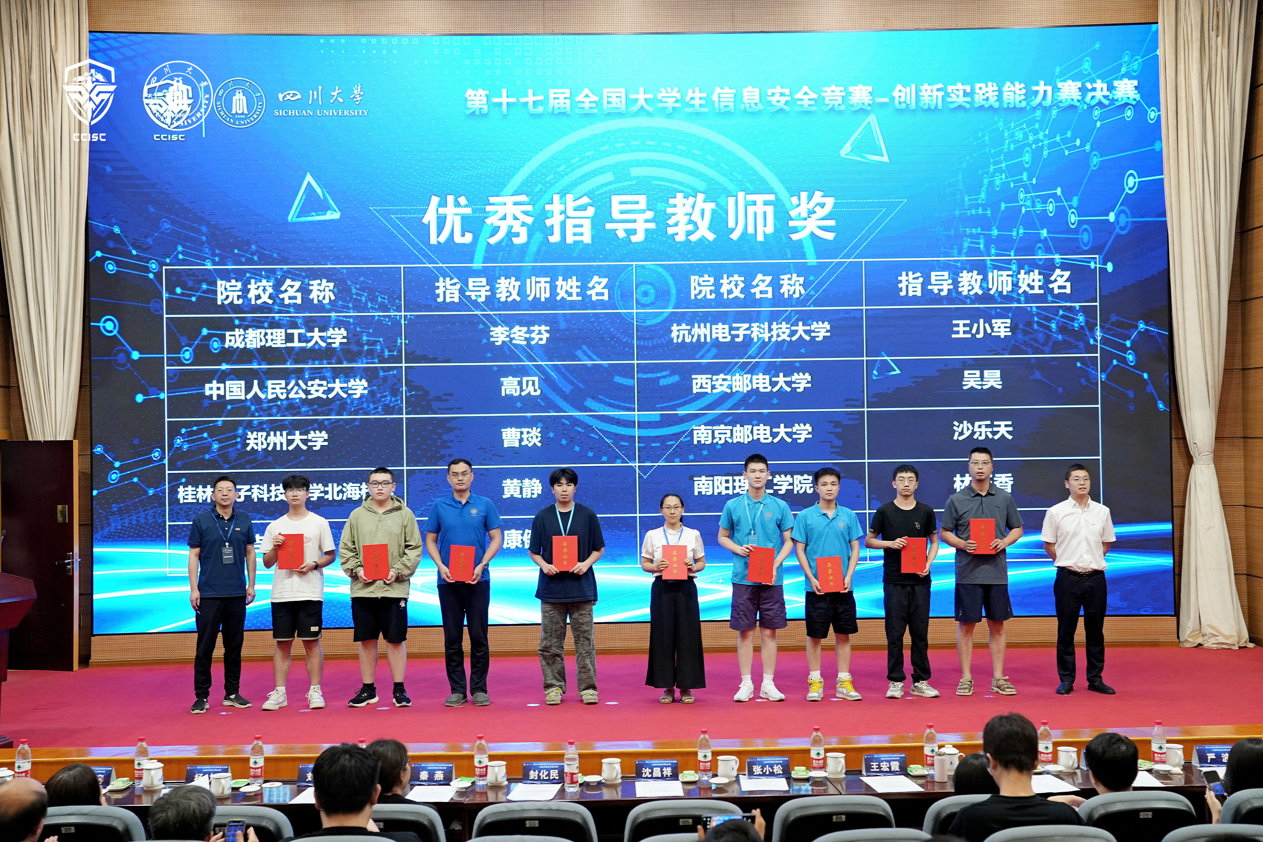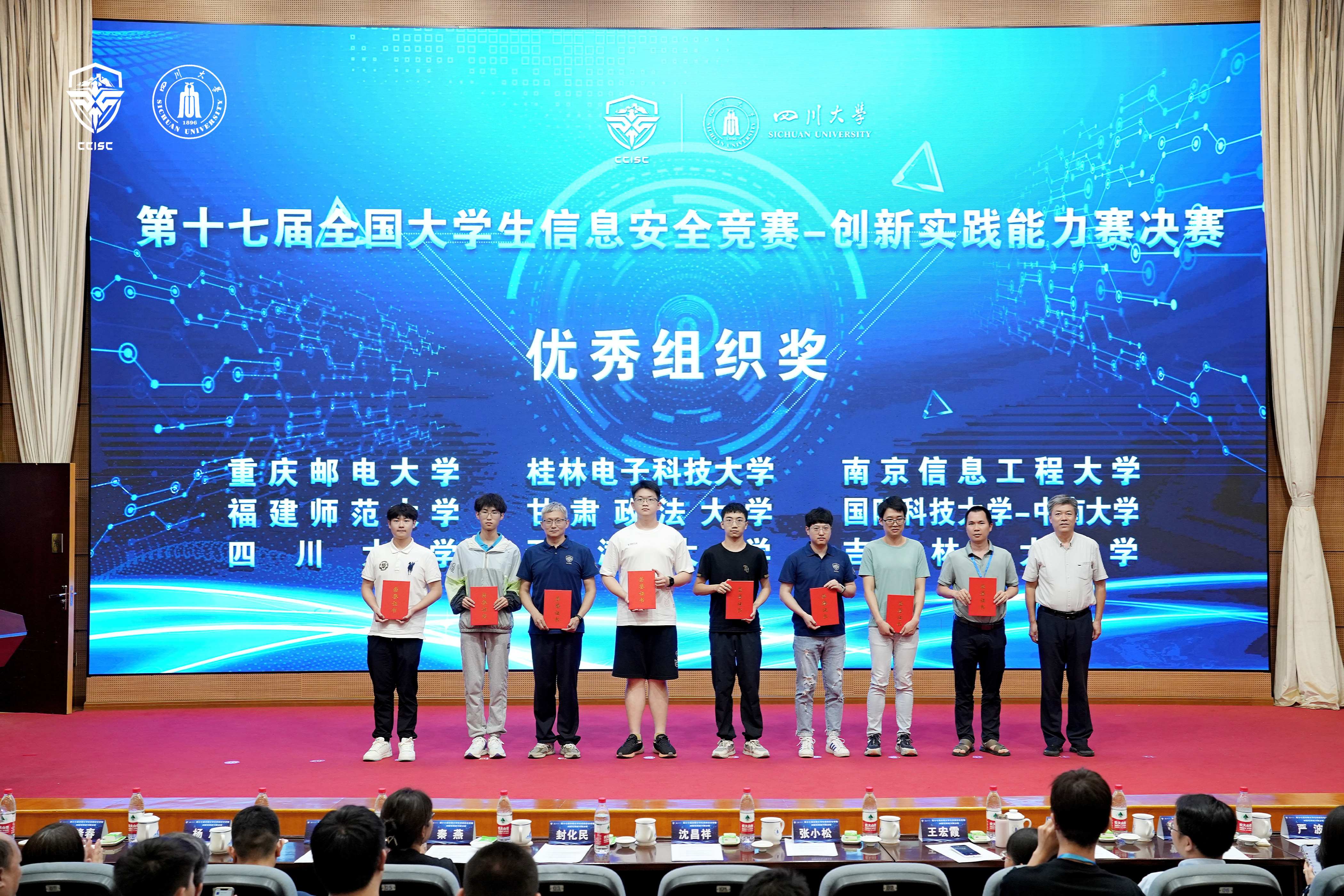 第十七届全国大学生信息安全竞赛总决赛于2024年7月21日在四川大学落下帷幕,我校网络安全竞赛战队取得历史性突破、由8名本科生宋斌、陈若珂、廖俊文、项健和唐琦、黄非阳、金焕然、李博睿组成的“Spirit #”队和“Spirit++”队勇夺两个一等奖。同时,我校获得竞赛优秀组织奖,指导教师康健再次获得优秀指导教师奖。