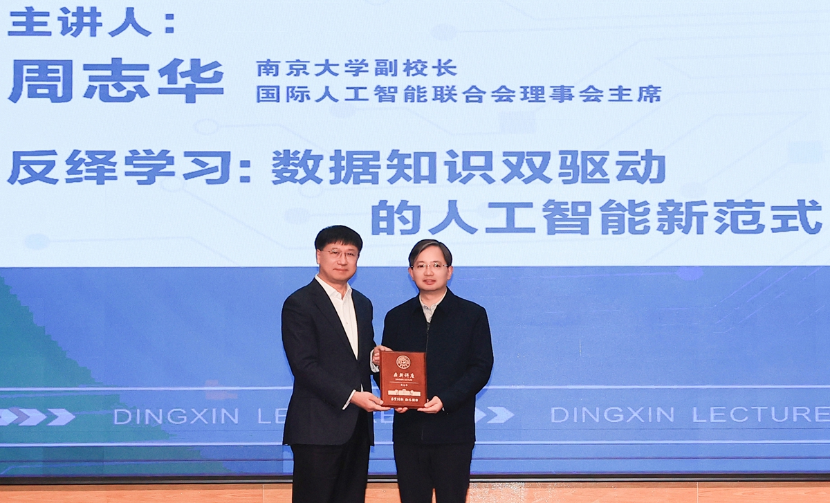 5月5日下午,作为第63届高等教育博览会“专家名师东北行”系列活动之一,西安交通大学徐宗本教授、清华大学胡事民教授、南京大学周志华教授受邀做客pp电子游戏官网鼎新讲座,围绕人工智能热点议题,为师生带来了一场精彩的学术盛宴。pp电子游戏官网校长张希出席讲座,并为主讲教授颁发鼎新讲座纪念牌。