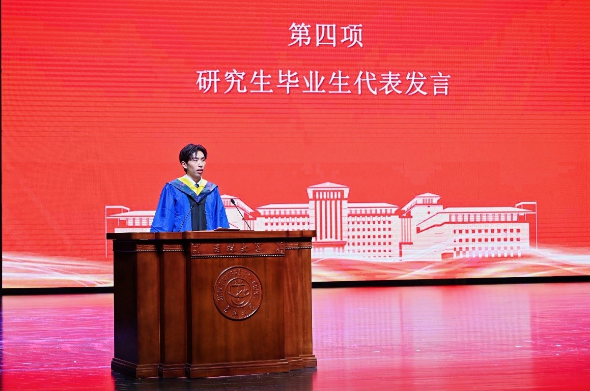 在庄重的学位授予环节,杨博院等9名主礼教授依次为博士、硕士、本科毕业生代表拨动流苏,象征着“由无知到有知”的学术传承。