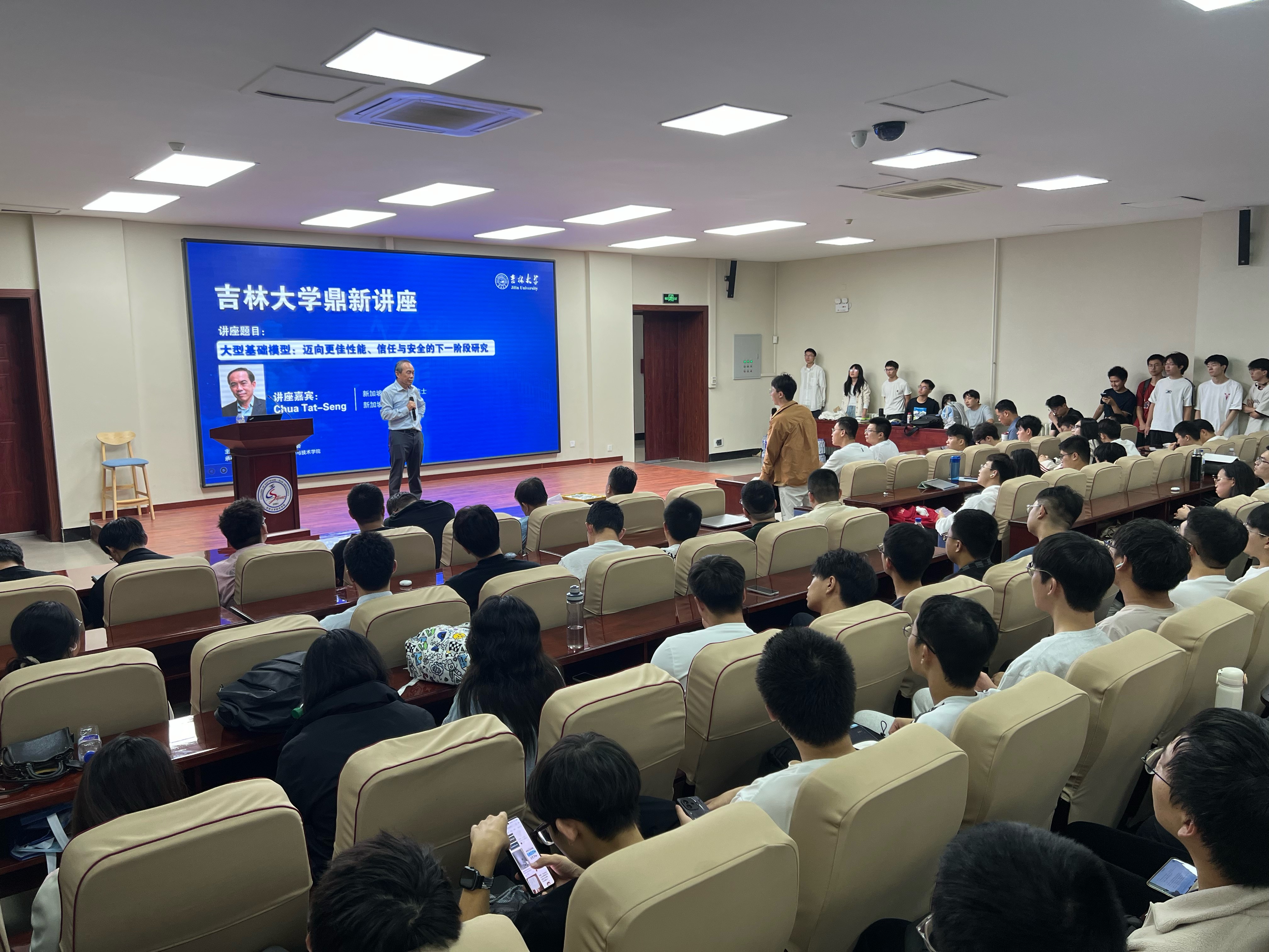 9月27日下午,新加坡国家科学院院士、新加坡国立大学计算机学院KITHCT讲席教授、新加坡国立大学与清华大学联合研究中心NExT的联合主任Chua Tat-Seng教授做客pp电子游戏官网鼎新讲座, 以“大型基础模型:迈向更佳性能、信任与安全的下一阶段研究” 为题,为吉大师生带来了一场精彩的学术讲座。pp电子游戏官网pp电子游戏官网副院长张永刚主持了讲座,pp电子游戏官网党委书记宫皓宇出席讲座并为Chua Tat-Seng院士颁发“鼎新讲座纪念牌”。