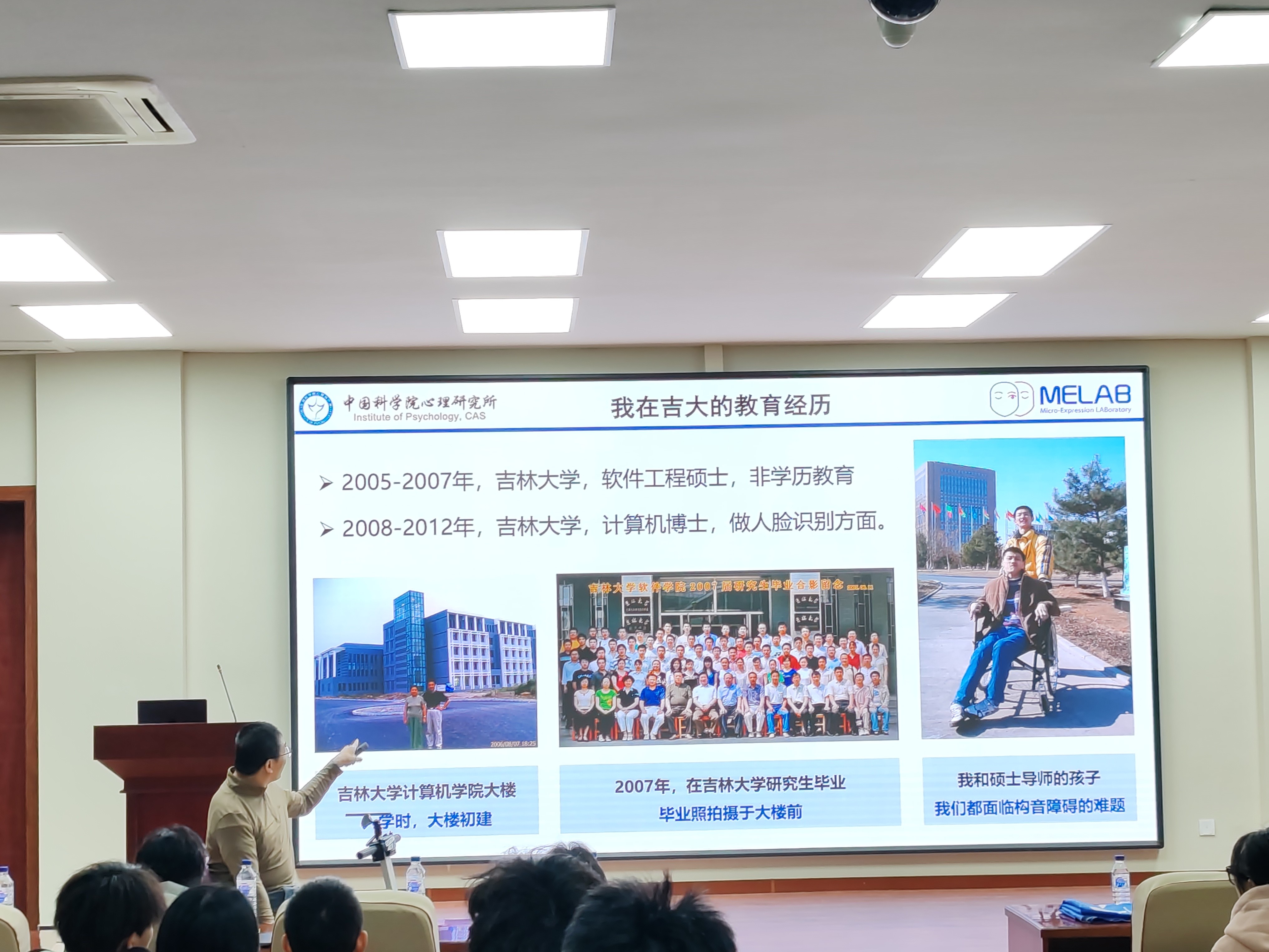 首先登场的是pp电子游戏官网2012届优秀校友、中国科学院心理研究所青年特聘研究员王甦菁老师,他以《我在pp电子游戏官网——I@JLU》为题,分享了自己在母校求学时的成长历程与科研启蒙,并介绍了团队在无障碍智能技术方面的最新探索。王老师用自己的经历诠释了科研之路上的坚持与勇气,他在逆境中不懈求索的精神深深感染了在场师生,赢得热烈掌声。