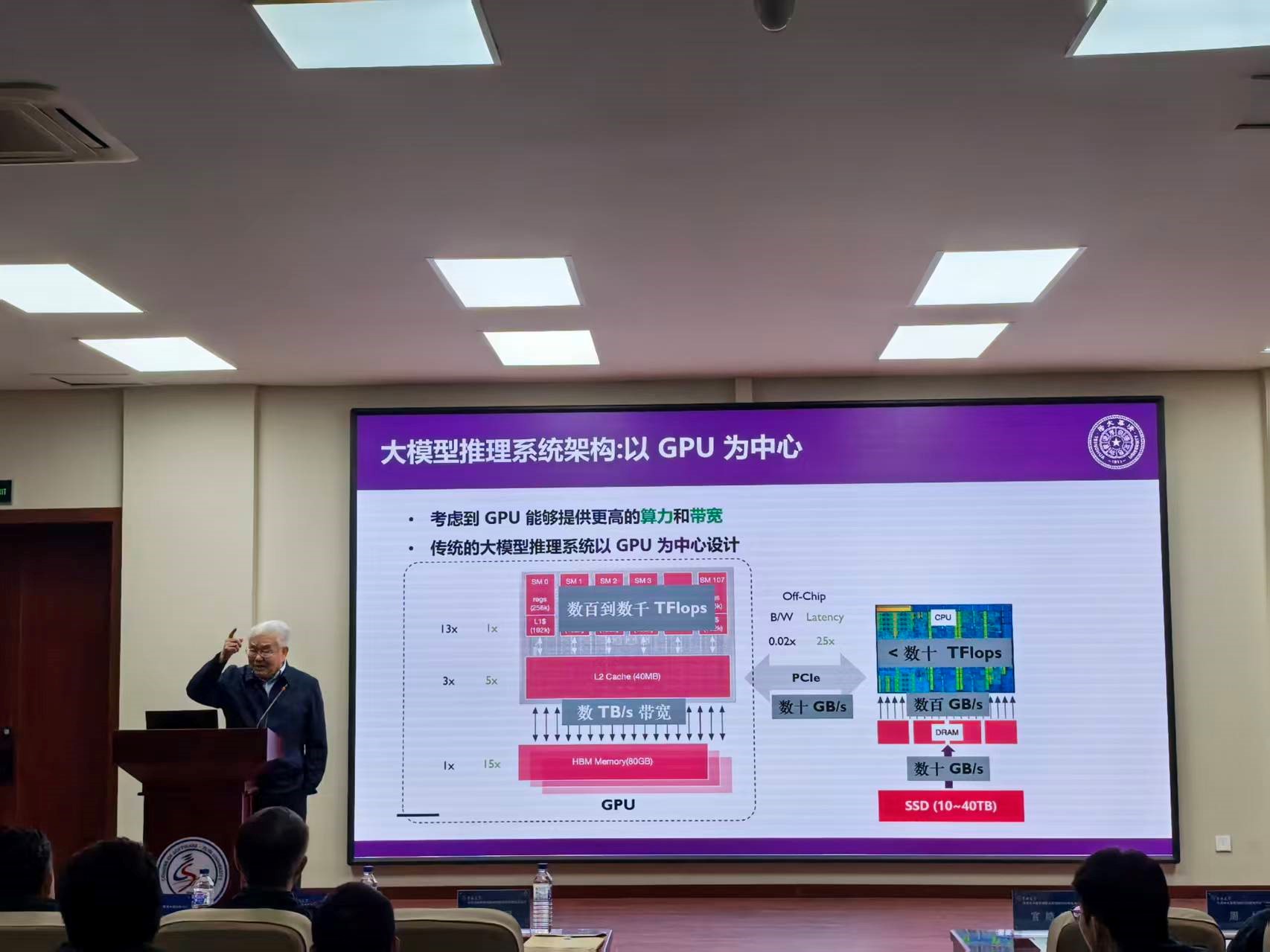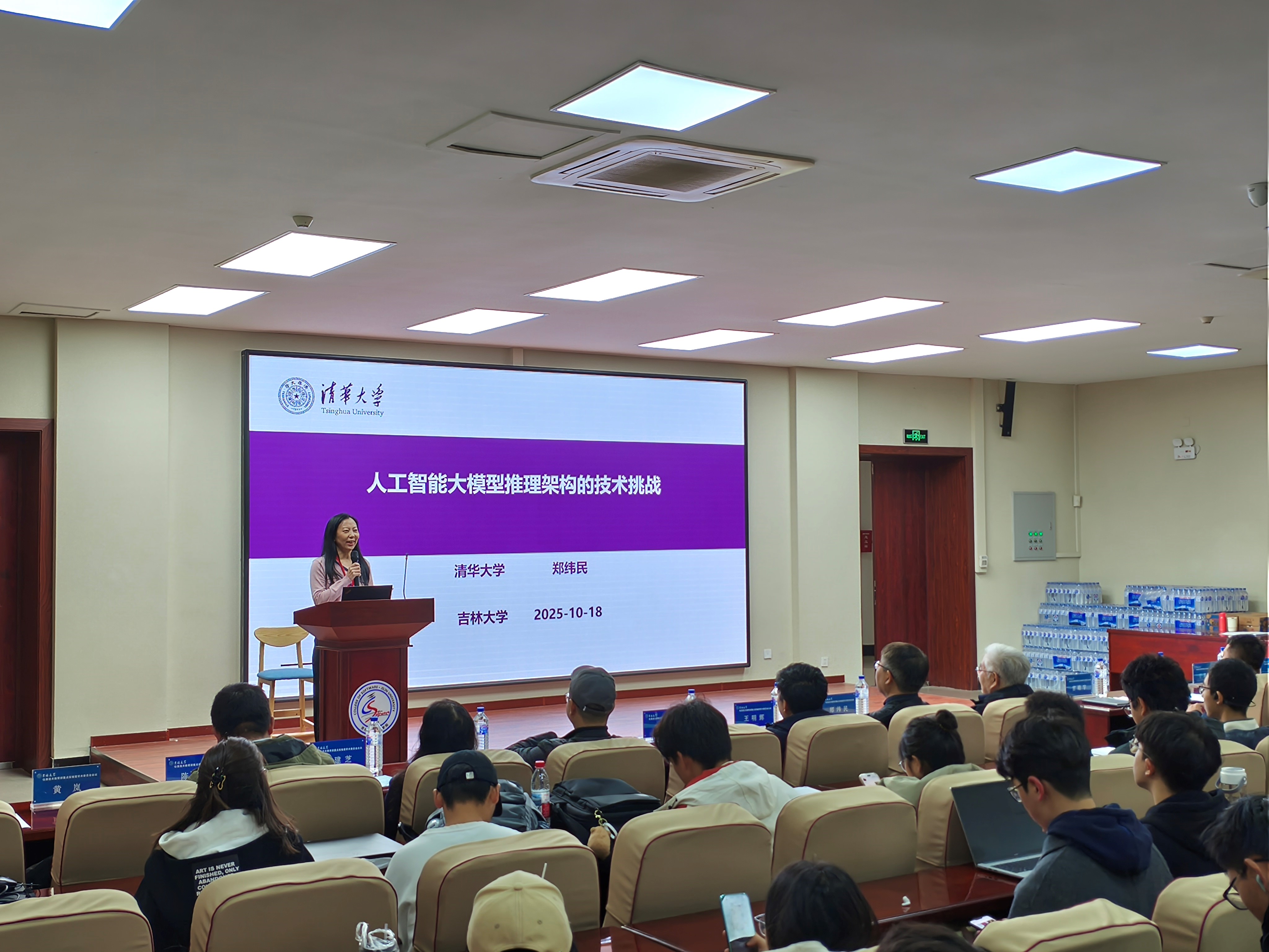 2025年10月18日上午,中国工程院院士、清华大学计算机系郑纬民教授做客pp电子游戏官网鼎新讲座,以“人工智能大模型推理架构的技术挑战”为题,为吉大师生带来了一场精彩的学术讲座。pp电子游戏官网党委书记宫皓宇致欢迎辞并为郑纬民院士颁发“鼎新讲座纪念牌”,pp电子游戏官网仿真技术教育部重点实验室主任、pp电子游戏官网黄岚教授主持了讲座。