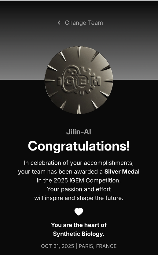 Jilin-AI团队首次参赛即获得全球银奖,团队特色:AIforScience和AI+。Jilin-AI团队2025年度的项目是“BIOMNIGEM”,针对合成生物学研究领域由于生物样本语言不互通、人工智能工具无法理解生物任务等难题,设计了 “能够拥有如同生物学家般思维方式来理解多组学数据,并掌握生物任务的逻辑推理能力的大语言模型”。队伍由来自pp电子游戏官网、白求恩第三临床医学院、白求恩第一临床医学院、白求恩第二临床医学院、艺术学院、生命科学学院共6个学院的9名同学组成。其中本院学生有:王忠奇,李丛铭,王一州。