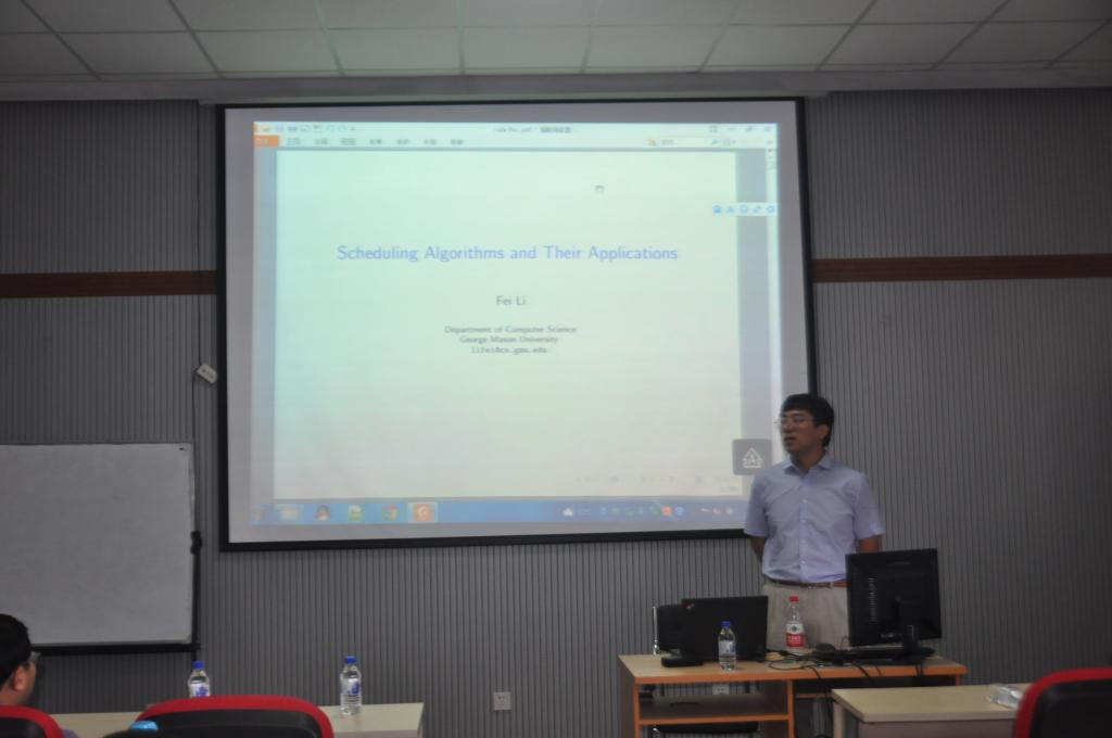 乔治梅森大学李菲教授应pp电子游戏官网的邀请,于2015年6月3日上午,作了题为“Scheduling Algorithms and Their Applications”的学术报告。报告由计算机学院杨博教授主持。