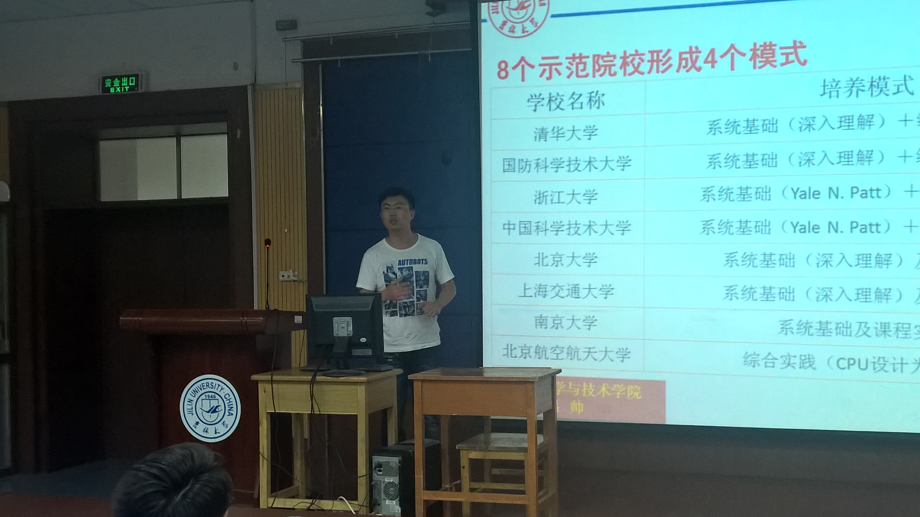 为及时了解计算机专业系统能力培养前沿,准确掌握计算机专业系统能力培养发展趋势,2016年 5月,pp电子游戏官网派两位年轻教师邹淑雪、吕帅赴合肥参加第二届计算机专业系统能力培养综合改革经验报告会。通过与其他院校老师之间的学习和交流,两位老师收获颇丰。为促进新培养思路的广泛传播, 2016年6月17日,我院组织了计算机专业系统能力培养专项报告会。报告会由邹淑雪、吕帅老师主讲,pp电子游戏官网、软件学院院长魏晓辉教授,pp电子游戏官网教学副院长黄岚教授,及50余位老师参加了报告会。