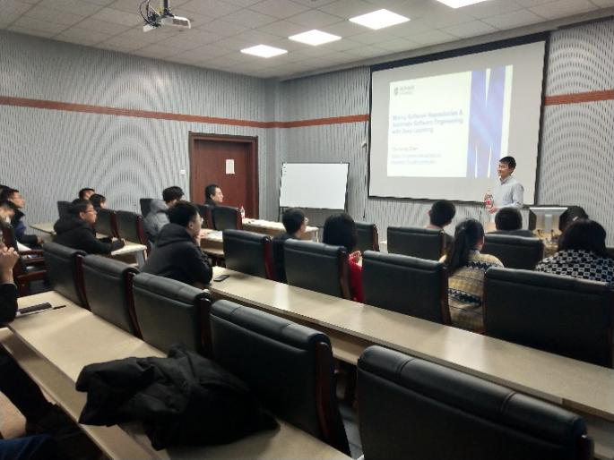 2018年12月6日上午,来自澳大利亚Monash University的陈春阳老师在pp电子游戏官网计算机楼A521做了题为:“Mining Software Repositories & Automated Software Engineering with Deep Learning”的讲座报道。陈春阳老师博士毕业于新加坡南洋理工大学,师从邢振昌老师和刘扬老师。博士在读至今,陈老师积累了丰富的研究经验,其主要研究方向为:挖掘软件仓库、文本挖掘、深度学习以及人机交互。在多年的研究经历中,陈老师十多篇论文被国际顶级会议录用,且2016年的论文Similar Tech被ASE评为Best Tool Model,同年另一篇论文被SANER评为当年的Best Research Paper。今年,陈老师的论文Deep Gauge又荣获ACM SIGSOFT杰出论文奖。