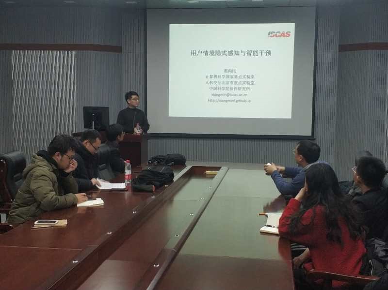 2018年12月22日上午,中科院软件所范向民副研究员应pp电子游戏官网邀请,在计算机楼A515作了题为“用户情境隐式感知与智能干预”的学术报告。