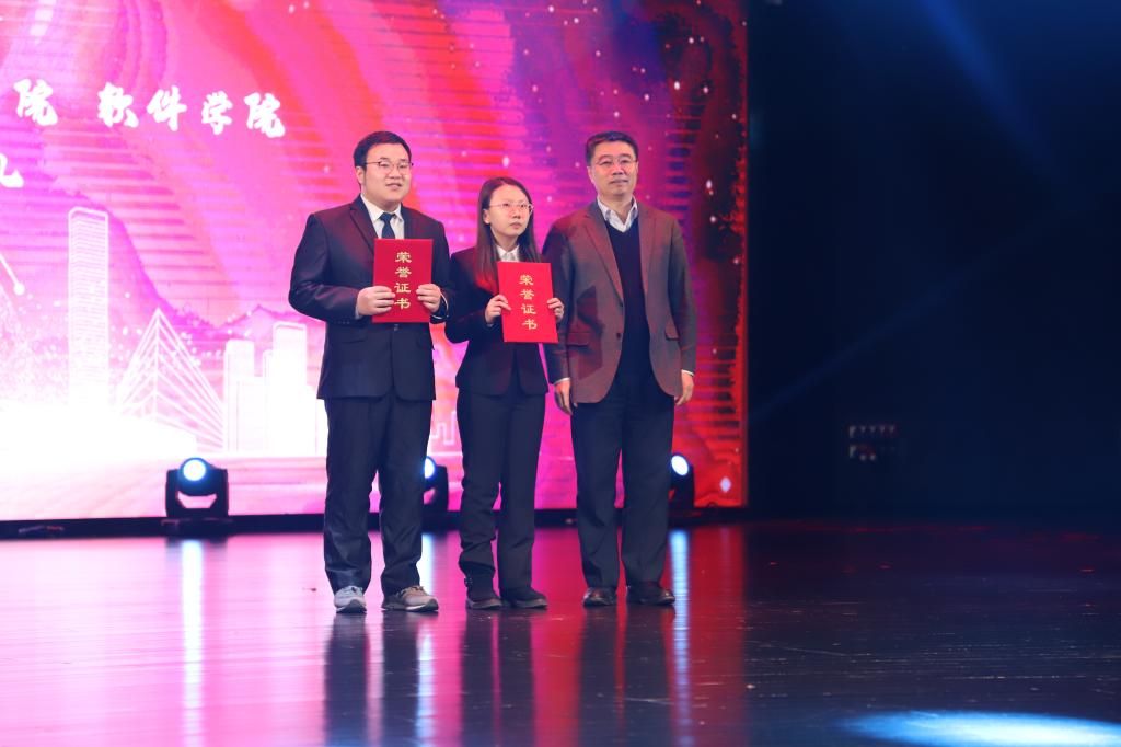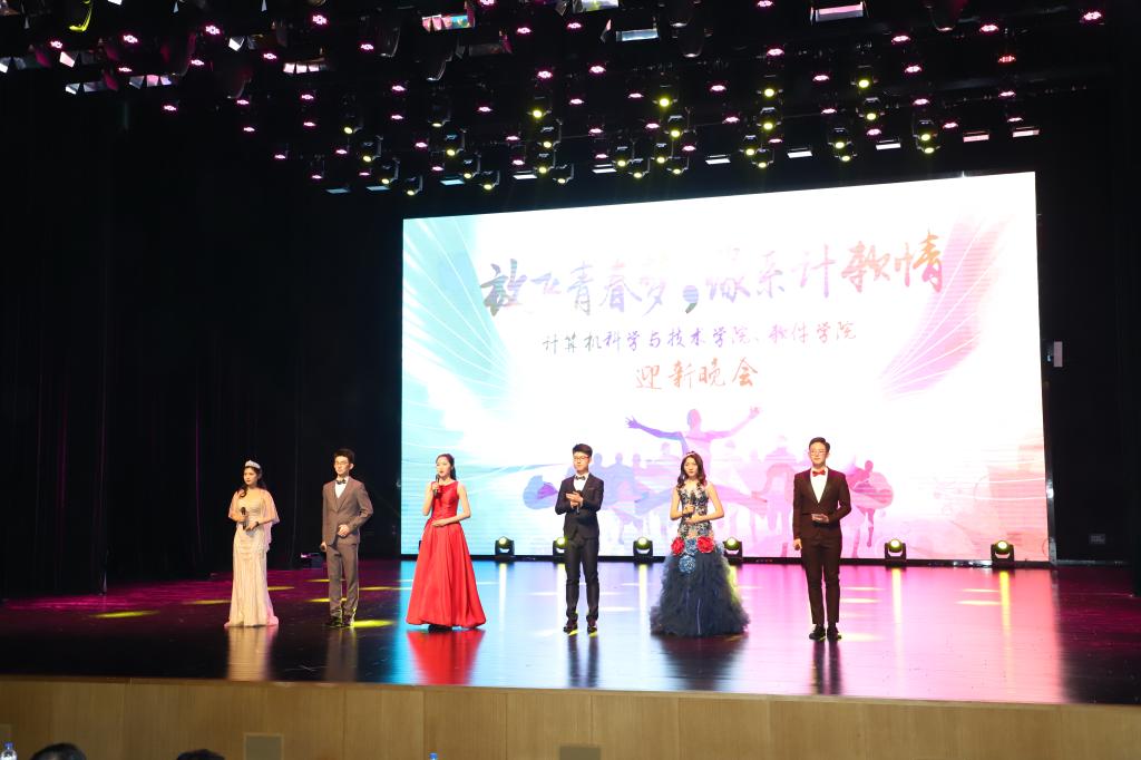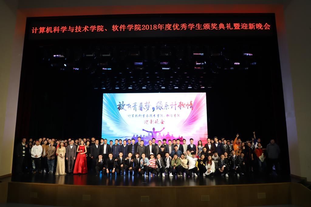 2018年12月17日晚18:00,pp电子游戏官网、软件学院在鼎新大讲堂联合举办了2018年度优秀学生颁奖典礼暨“放飞青春梦,缘系计软情”迎新晚会。出席晚会的嘉宾有学生工作部部长张国兴老师,研究生工作部副部长赵玥老师,教务处处长刘鹤老师,保卫处处长宫皓宇老师,学生就业创业指导与服务中心主任钟新老师,校团委书记代磊老师,pp电子游戏官网党委书记孟繁二老师,pp电子游戏官网、软件学院院长魏晓辉教授以及两院党政领导班子,教职工代表及全体2018级新生。