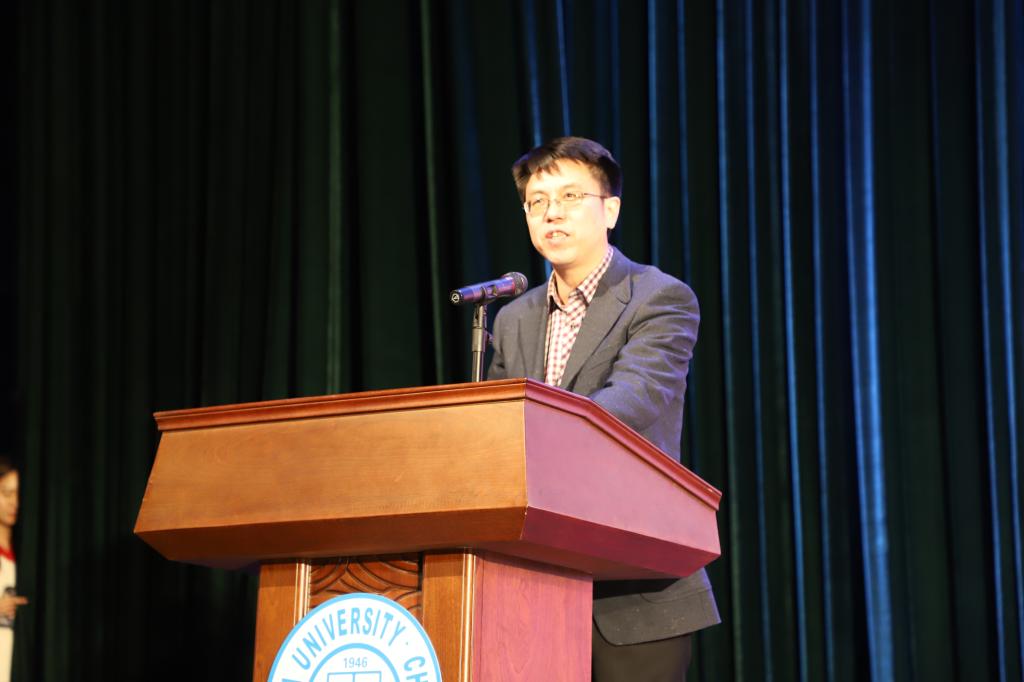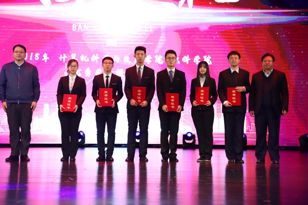 表彰仪式礼于18:00正式开始,观众的掌声在那一刻不约而同地响起。仪式由pp电子游戏官网党委副书记兼副院长白江同志主持。首先由pp电子游戏官网党委书记孟繁二宣读两院“2018年度优秀学生表彰决定”,其中9人获得pp电子游戏官网“王湘浩奖学金”,3人获得ACM国际大学生程序设计竞赛亚洲区域赛金奖,2人获中国“互联网+”大学生创新创业大赛铜奖,6人获得2018年度ccsp大学生计算机系统与程序设计竞赛金奖,5人获得2018年度中国高校计算机大赛移动应用创新赛二等奖。随后邀请各职能部门领导为获奖学生颁奖并合影留念。最后pp电子游戏官网、软件学院院长,博士生导师魏晓辉教授致辞,魏院长介绍了学院发展史、学科现在发展情况,也对新同学提出了要求,给予了希望。至此,颁奖典礼结束,“放飞青春梦,缘系计软情”迎新晚会正式开始。