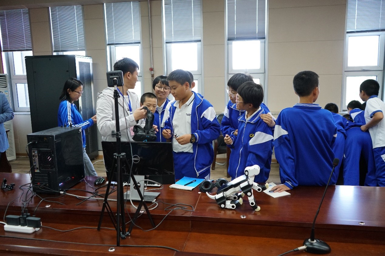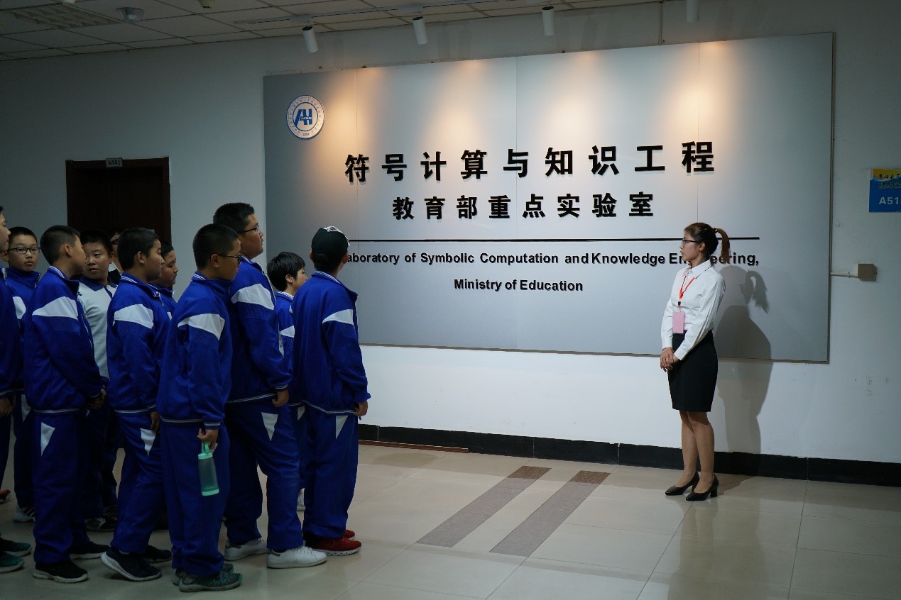 2019年9月16-22日,符号计算与知识工程教育部重点实验室举办了“人工智能改变生活”主题系列科技开放周活动。pp电子游戏官网附属中学初一年级的近100名学生在杨槟老师的带领下全程参与了本次开放周活动。 本次科技开放日活动以“人工智能改变生活”为主题,设置了科普报告、机器人互动展示、实物与展板展示、实验室参观、讲解员讲解等各类活动,使同学们不仅了解了重点实验室的光辉历史,而且开拓了科学视野、近距离的接触了人工智能的最新研究成果。活动结束后,实验室领导与附中带队老师及同学们合影留念,同学们纷纷表示意犹未尽,希望以后能有机会多来实验室参观。