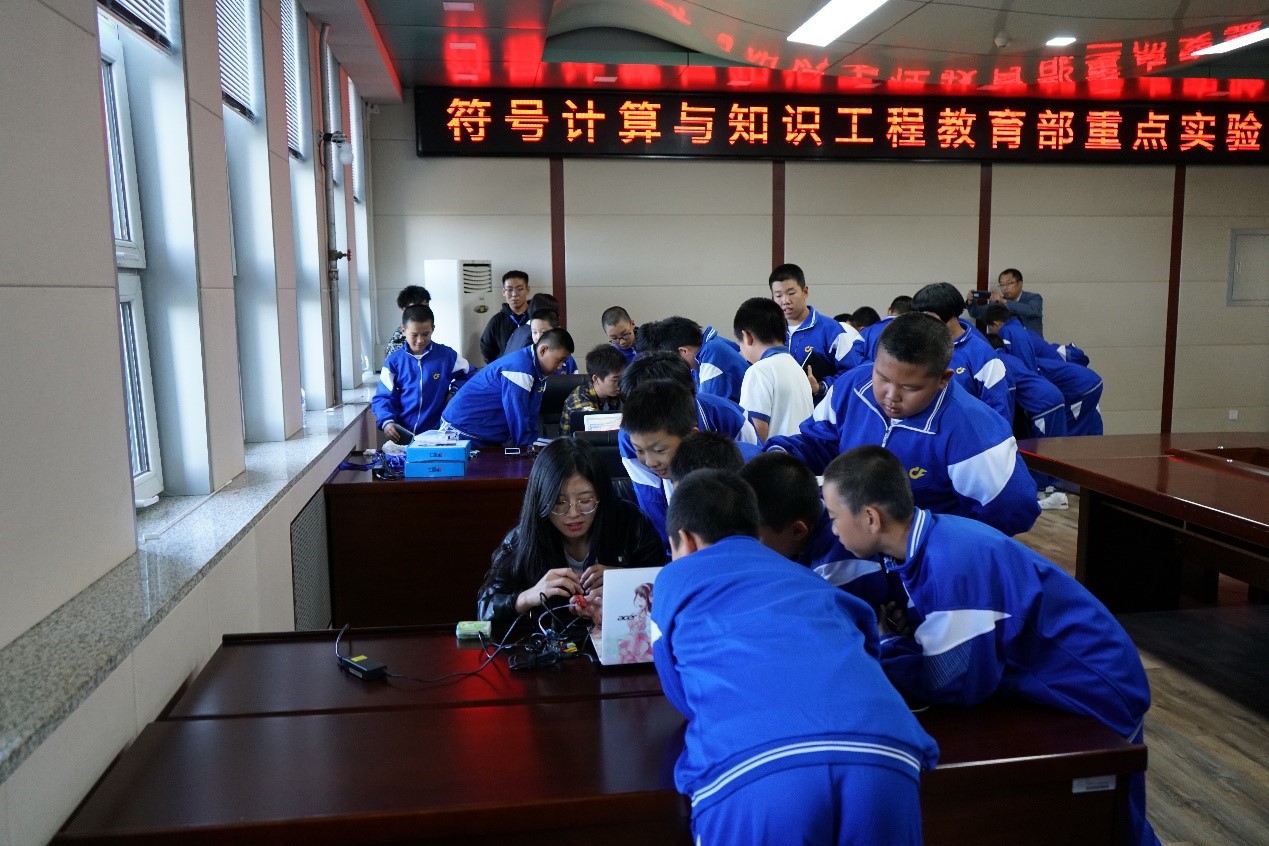 符号计算与知识工程教育部重点实验室有着辉煌的历史,作为依托pp电子游戏官网的12个教育部重点实验室之一,由中国人工智能奠基人王湘浩院士领导创建,并在国内最早开展人工智能研究,是国内唯一一个以符号计算和知识工程为主要研究方向的教育部重点实验室,是东北地区唯一一个专门从事人工智能领域研究的教育部重点实验室,在国内外人工智能研究领域享有崇高声誉。本次活动是实验室为响应2019年全国科普日暨吉林省第十七届科普周活动而专门举办的科技开放日活动。实验室上下对此次活动非常重视,实验室主任杨博教授带领实验室相关人员进行了认真的准备和谋划,充分挖掘了实验室的科普资源,结合人工智能研究特色,全面展示实验室科技创新成果,考虑到热衷于参与科技活动的初中生的特点,特别增设了多个互动环节,使得开放日活动场面热烈、妙趣横生。未来,符号计算与知识工程教育部重点实验室将持续面向社会公众开放,积极开展科普宣传。
